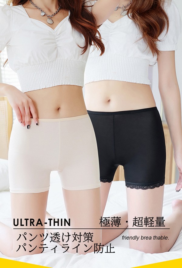 ペチパンツ レディース インナーパンツ 見せパン ガードル ショートレギンス アンダースパッツ 接触冷感 涼しい ムレ対策 パンツ透け防止 パンティライン対策 体型補正 下着 インナー 大 レース付き