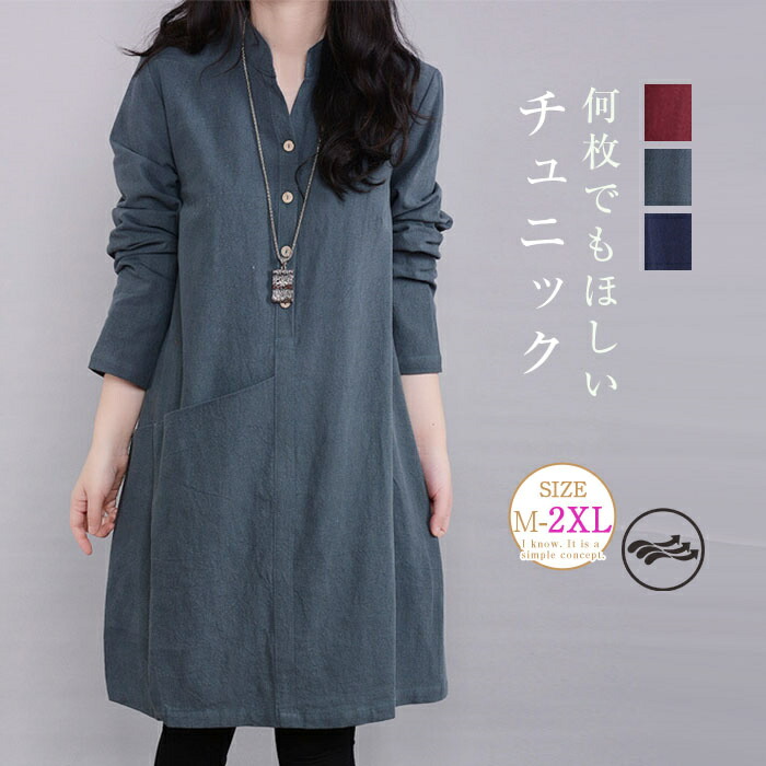 無地 シャツ ロングシャツ チュニック チュニック 期間限定ポイントUP! ワインレッド ネイビー グリーン M L XL 2XL