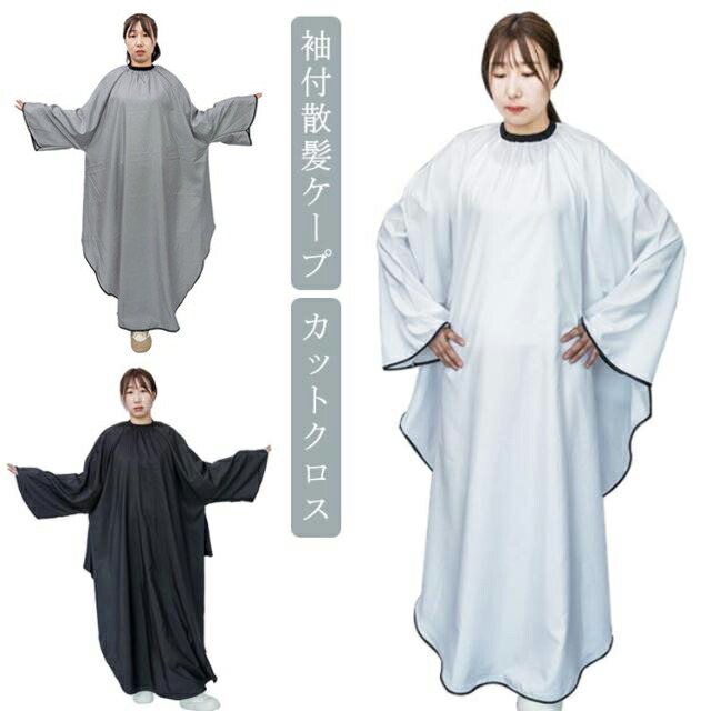散髪ケープ カットクロス 袖付き ケー ホワイト ブラック グレー