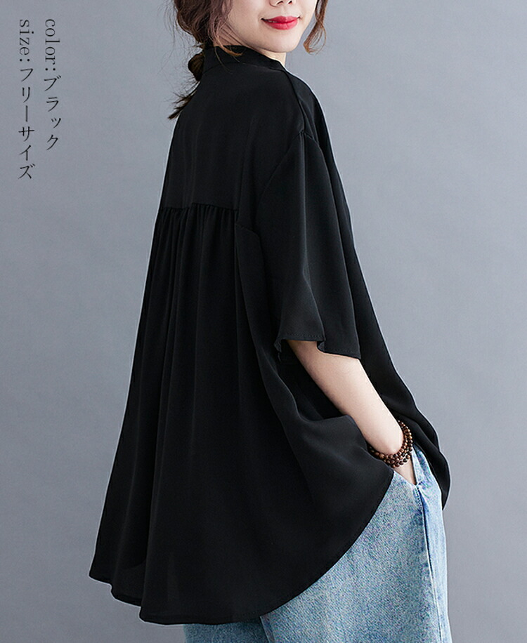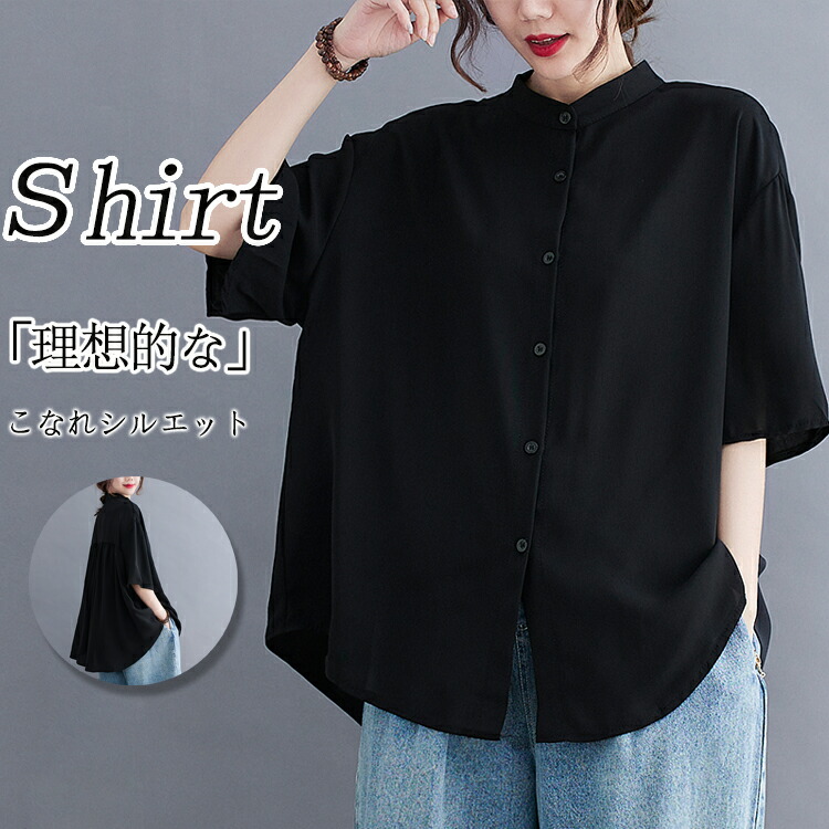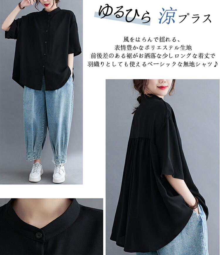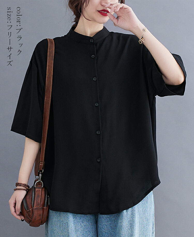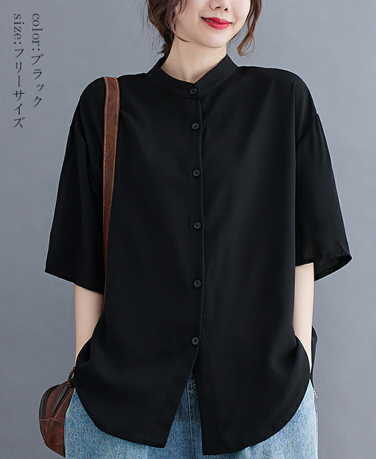 バンドカラーシャツ 半袖 レディース レディースファッション 新作 ブラック ネイビー(New!) ホワイト(New!)