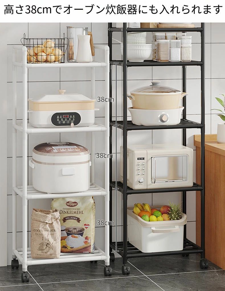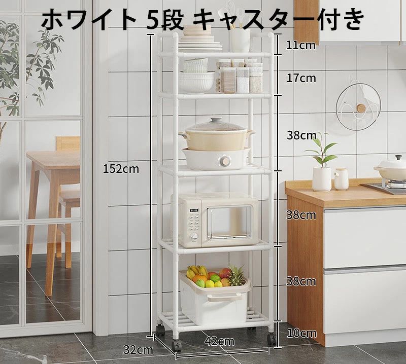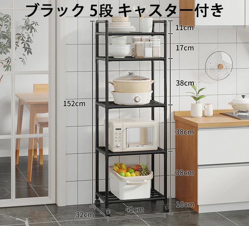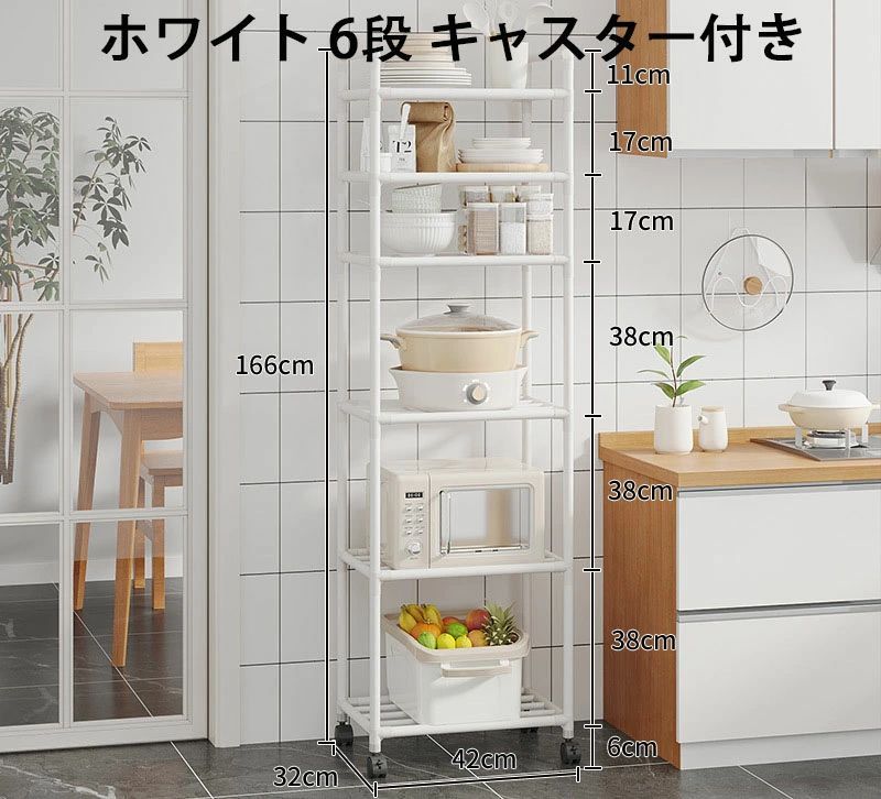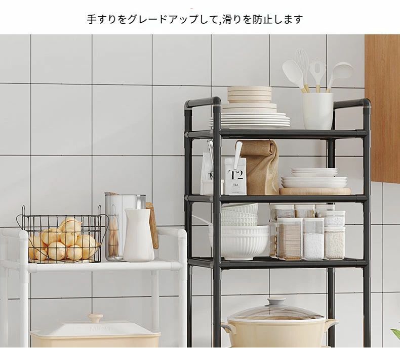 5段 キッチン フライパンラック キッ ホワイト ブラック 3段 42*32*96cm 4段 42*32*130cm 5段 42*32*152cm 6段 42*32*166cm