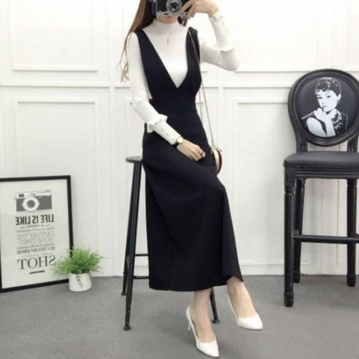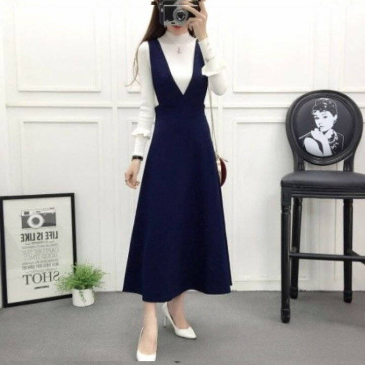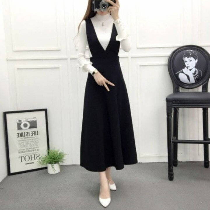 深めVネック ジャンパースカート ワン ワンピース 続々登場 ブラック ネイビー XS S M L XL 2XL 3XL 4XL