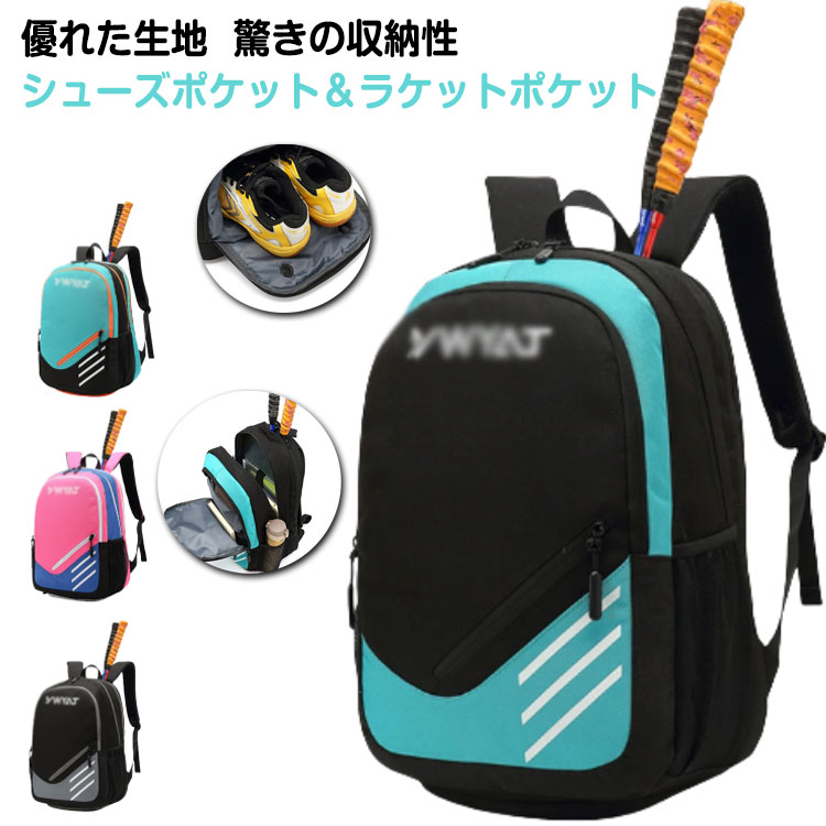 持ち運び簡単 ラケットバッグ 2 3本バドミントン 旅行用 バックパック ケース リュック ラケット3本収納 靴収納 スポーツ 多機能型 テニスラケットバッグ バドミントン バック 防水素材