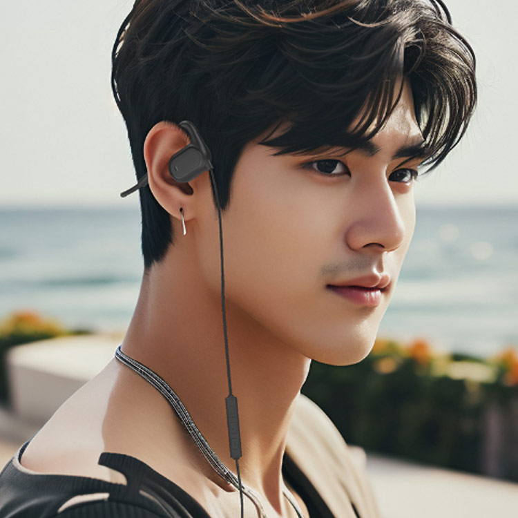 【耳を塞がない】負担なく使えるオープンイヤーイヤホン。従来のイヤホン特有の聞き疲れや耳の中の蒸れによる不快感がなく、長時間使用しても疲れにくい。空気伝導を採用したため、骨伝導イヤホンより違和感が少なく、骨伝導で聴きなれない方にはぜひこちらの空気伝導イヤホンがおすすめです。
