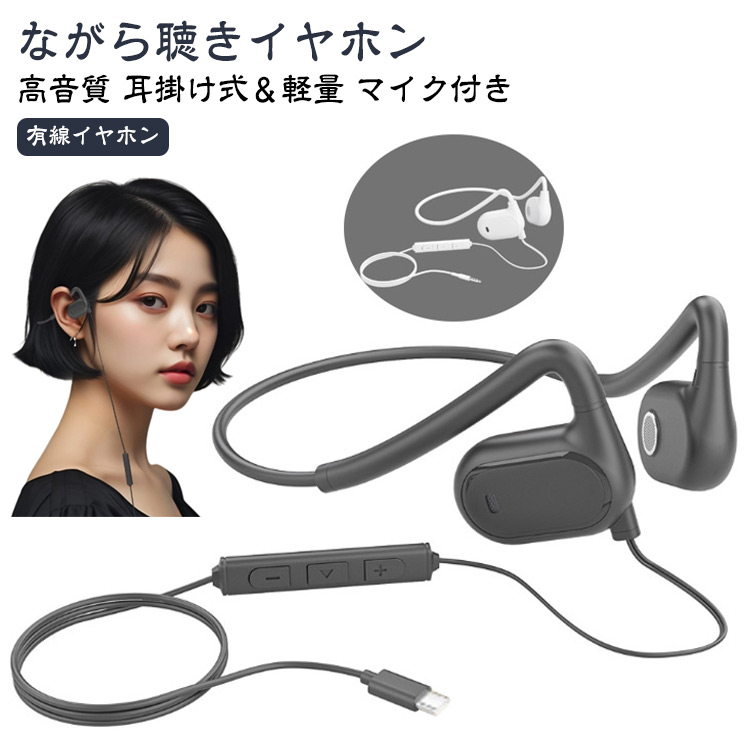 イヤホン 有線 タイプC 遅延なし ヘッドセット 3.5mm 耳掛け ゲーミングイヤホン 空気伝導イヤホン 軽量 クリア音質 音漏れ防止 耳を塞がない 通話 ゲー オンライン会議