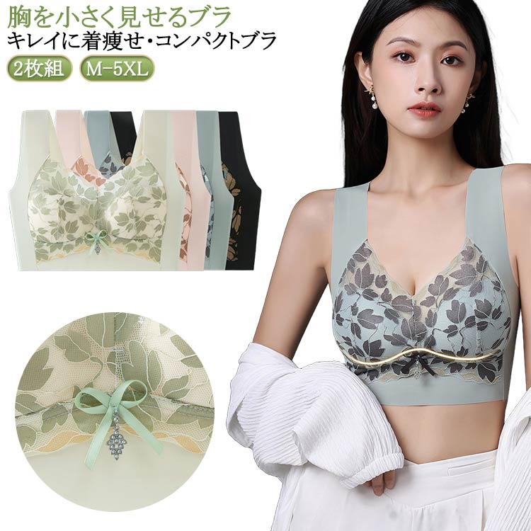 胸を小さく見せるブラ シームレスブラ インナー 下着 ナイトウエア 特集 グリーン+グリーン ピンク+ピンク ブルー+ブルー ブラック+ブラック グリーン+ピンク グリーン+ブルー グリーン+ブラック ピンク+ブルー ピンク+ブラック ブルー+ブラック M L 2L 3L 4L 5L