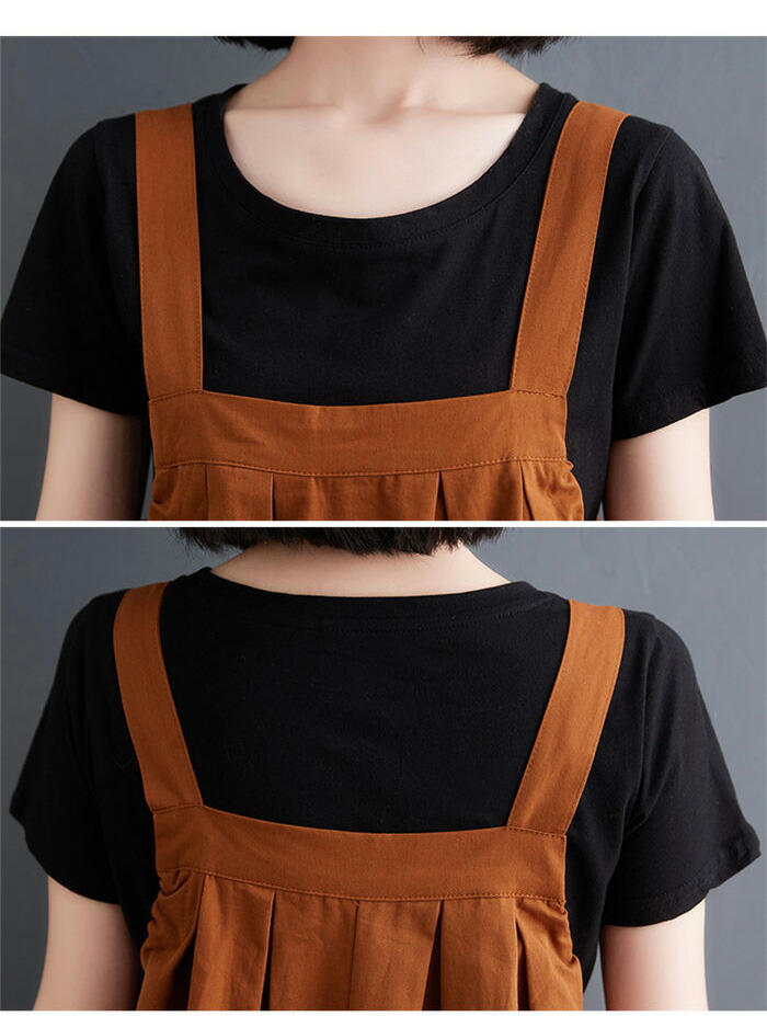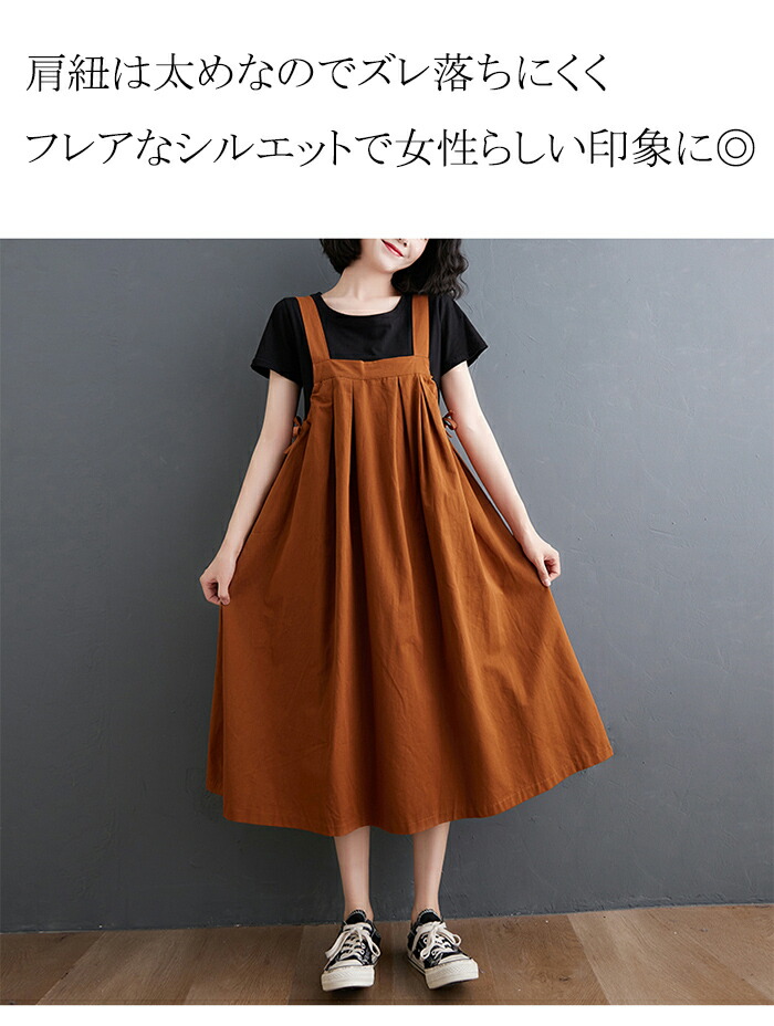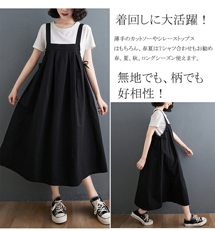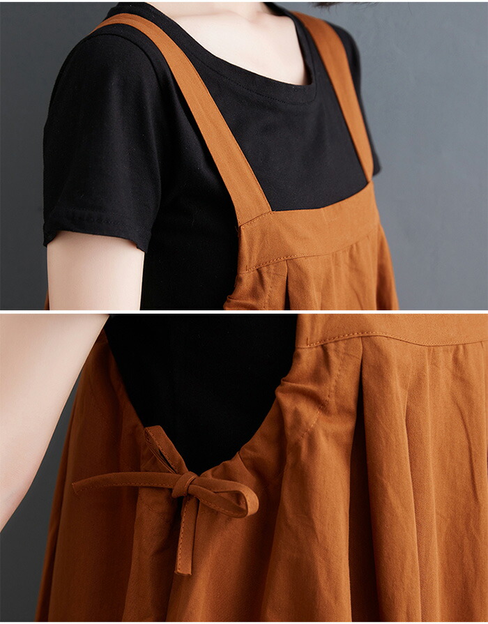 ワンピース 春夏 ジャンパースカート オールインワン サロペット 新作 キャラメル 黒