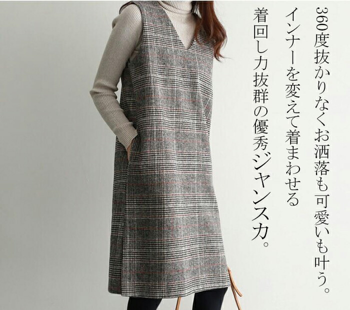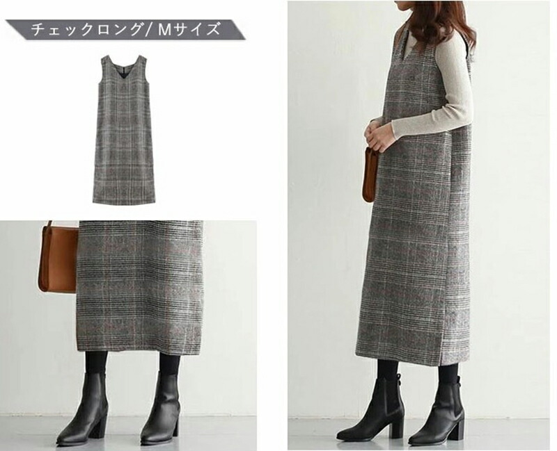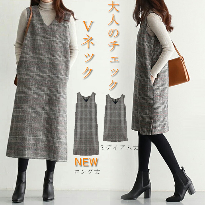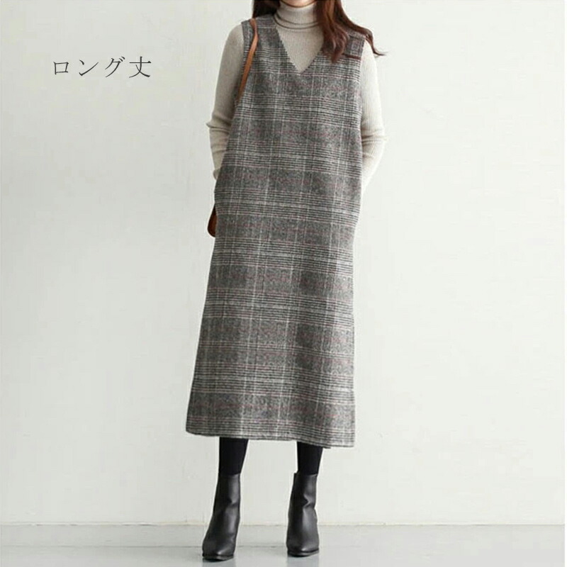 ジャンパースカート 秋冬 ロング ワン ミデイアム丈 NEW:ロング丈 M L XL
