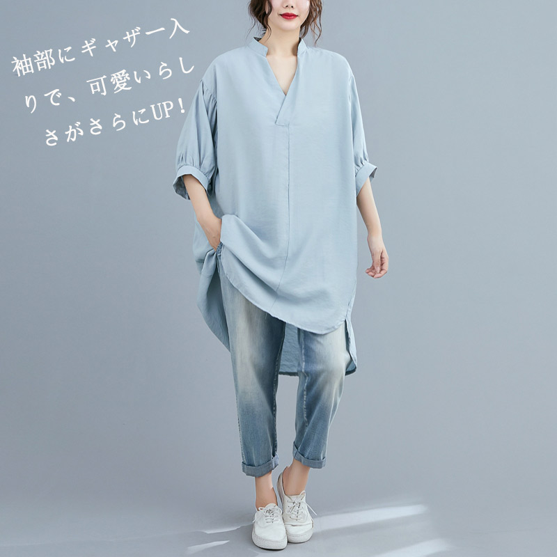ロングシャツ レディース チュニック チュニック 続々入荷中 ライトブルー ピンク ブラック ネイビー