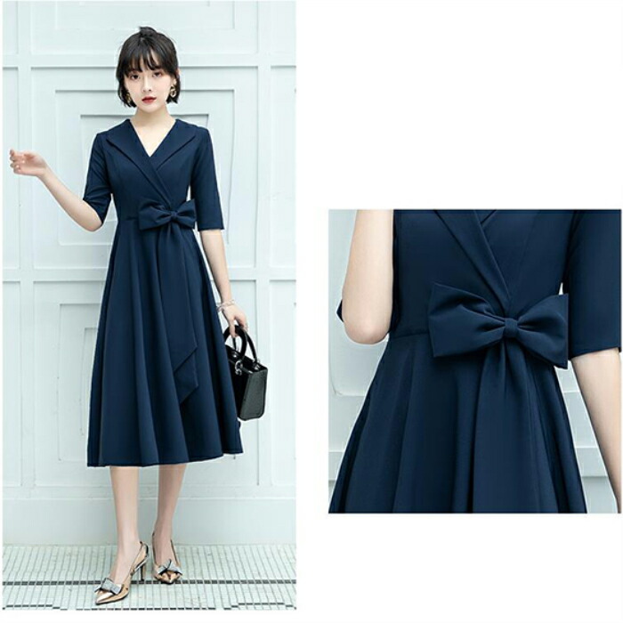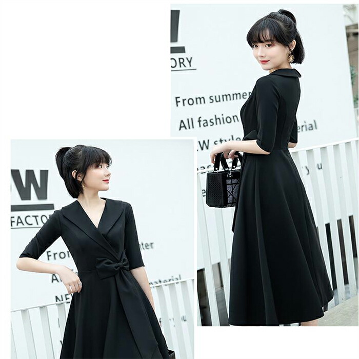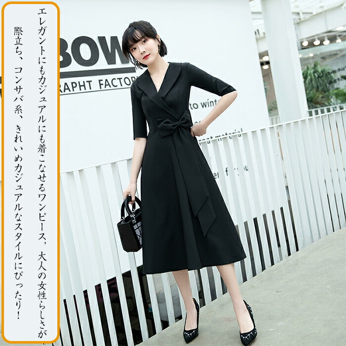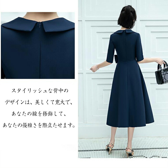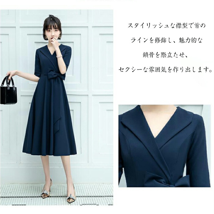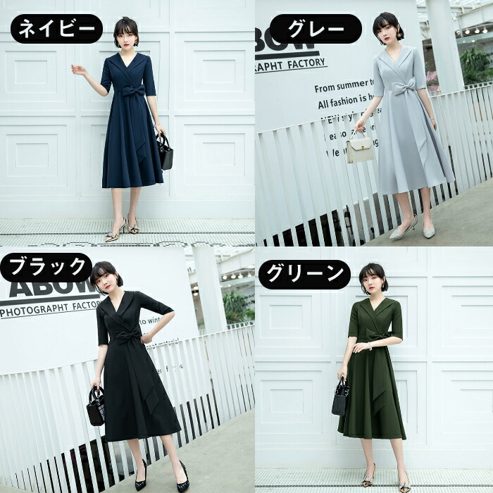 ワンピース レディース 中袖 Aライン 無地 膝下丈 細見え 着痩せ 体型カバー 夏 春秋 シンプル 女性 エレガント ロング xS-3XL ドレス