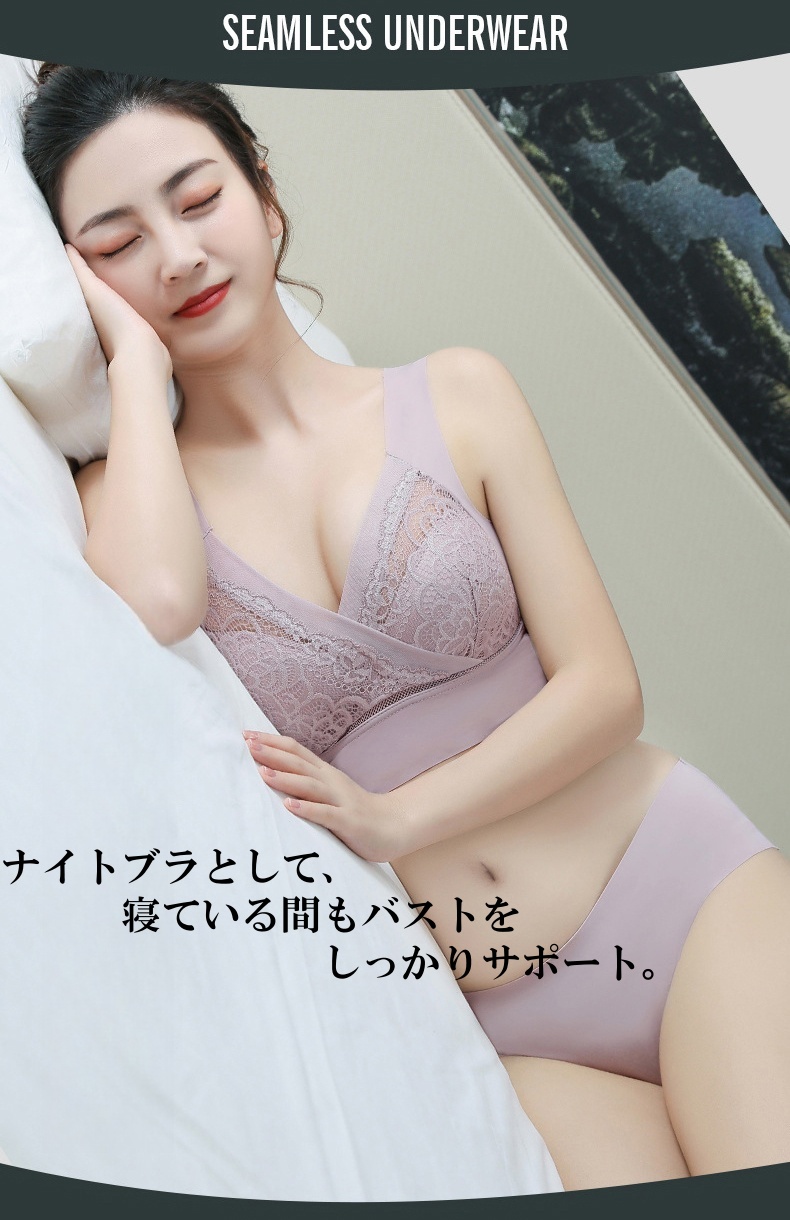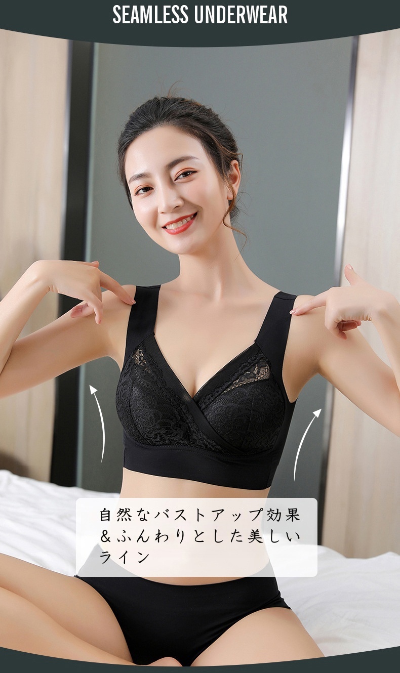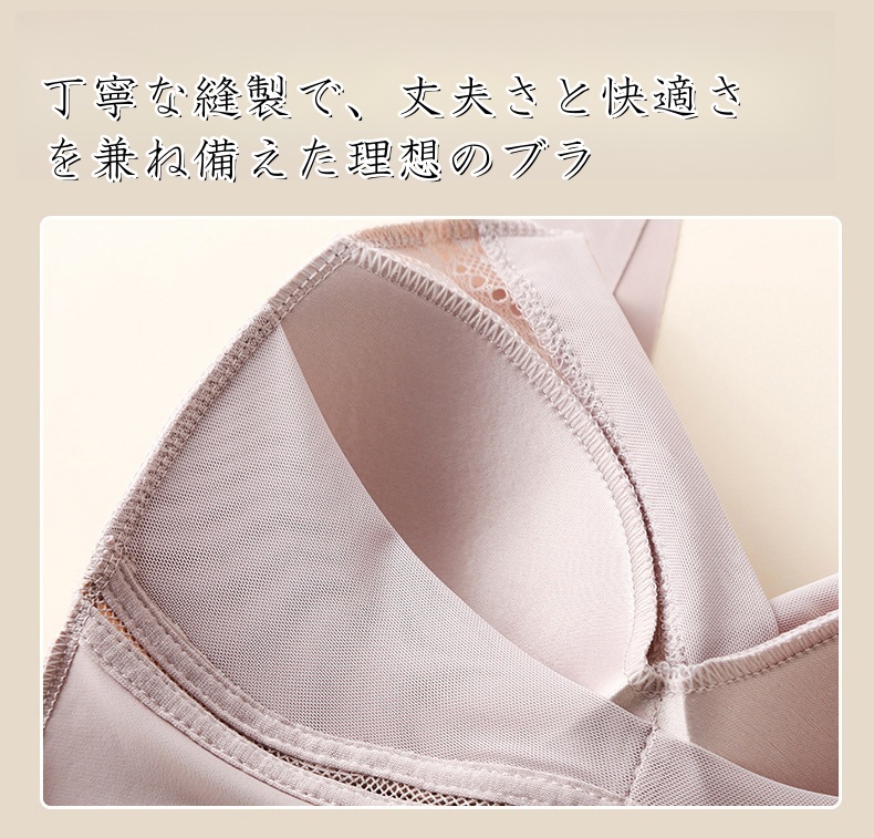 ノンワイヤー設計で締め付け感ゼロ。ストレスフリーで長時間の着用も快適。