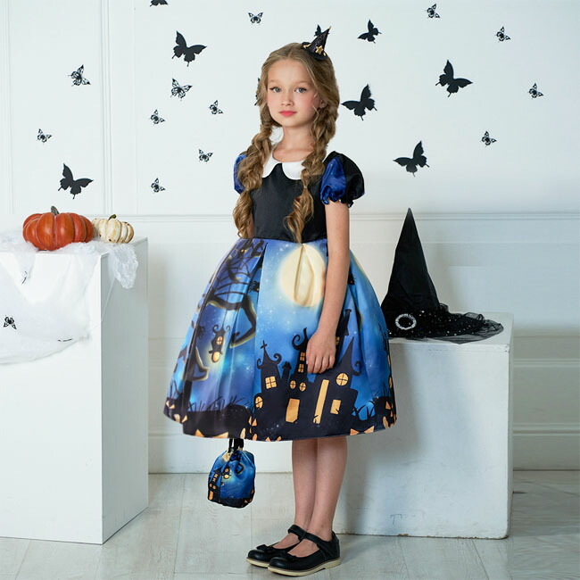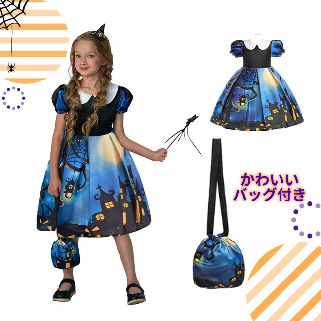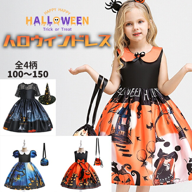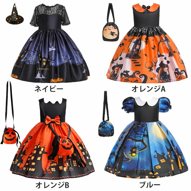 ハロウィン 衣装 子供 子供ドレス コ ホビー 特集 ネイビー オレンジA オレンジB ブルー 100 110 120 130 140 150