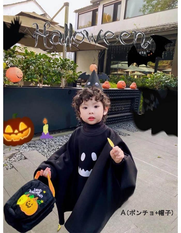 ハロウィン 衣装 子供 仮装 コスプレ ホビー 48%Off A(ポンチョ+帽子) A(ポンチョ+帽子+バッグ) B(ポンチョ+帽子) S M L XL
