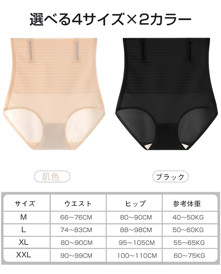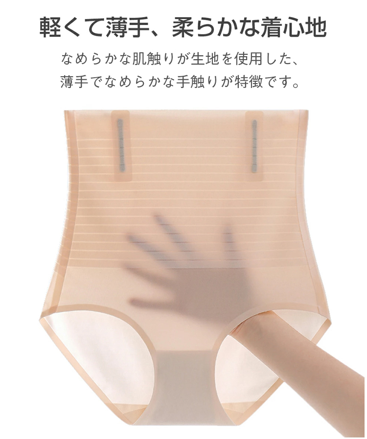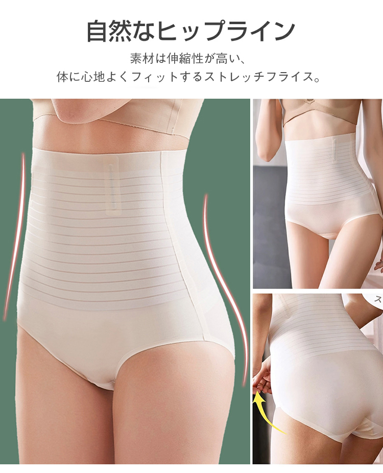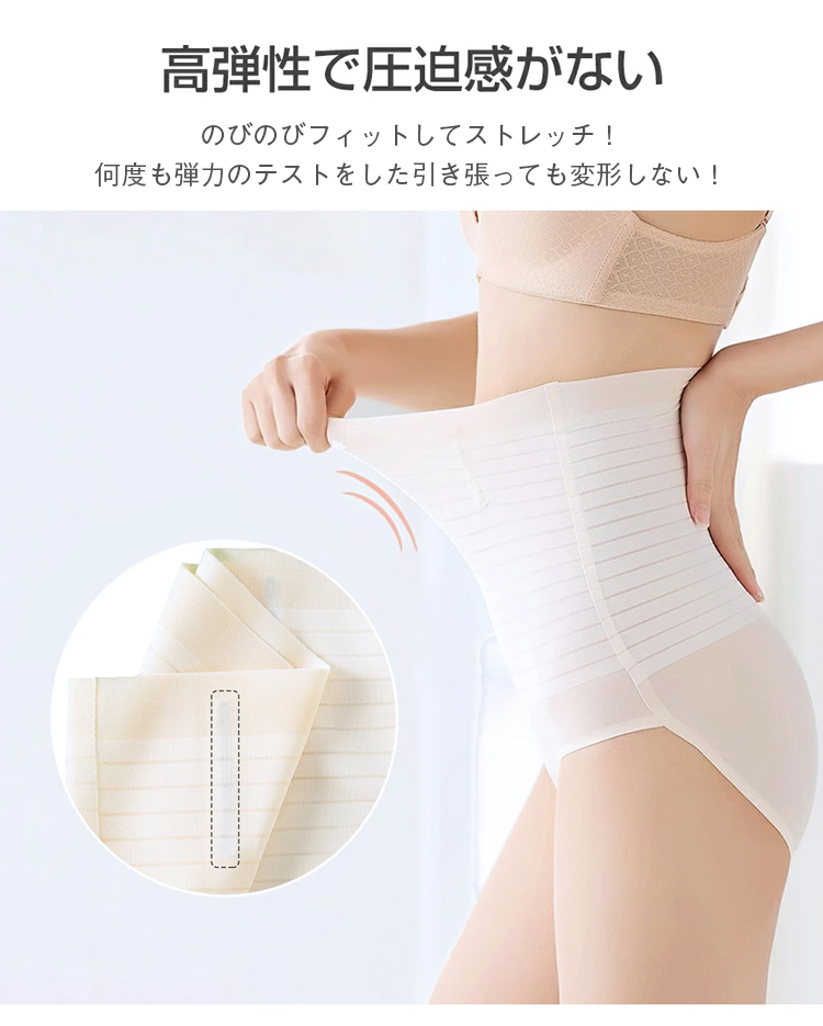 ハイウエスト設計:ウエストまわりからヒップまでスッキリと引き締め、理想的なボディラインを作ります。