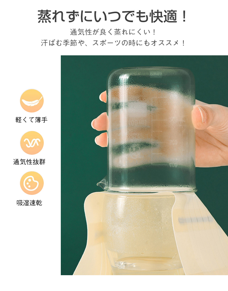 通気性抜群:通気性が良いため、蒸れにくく、汗ばむ季節にも快適に使えます。