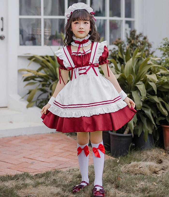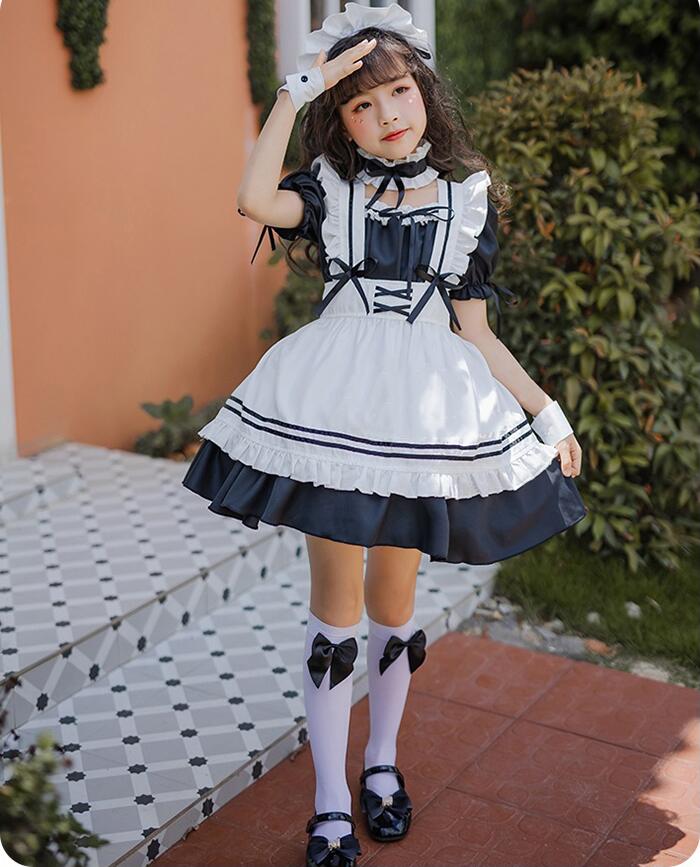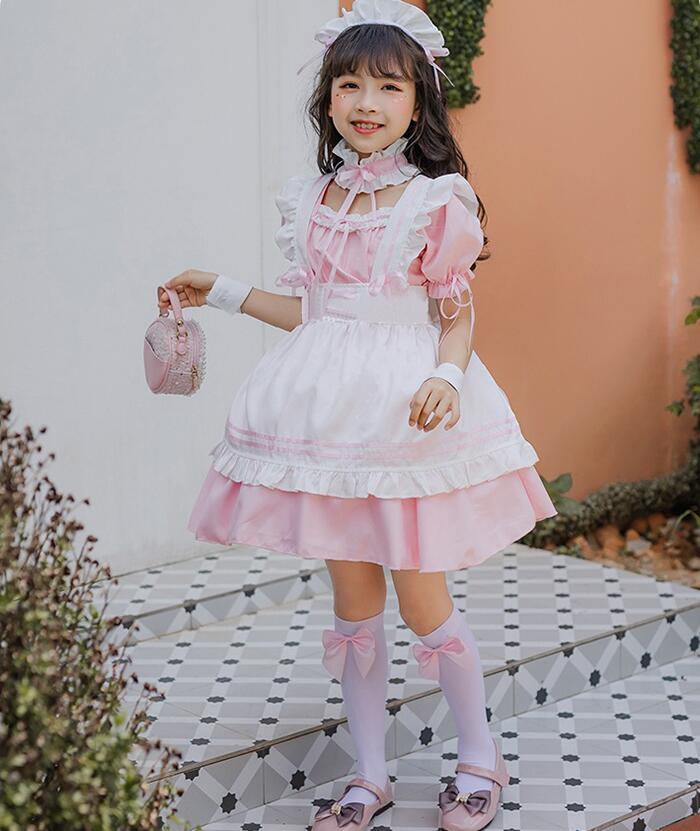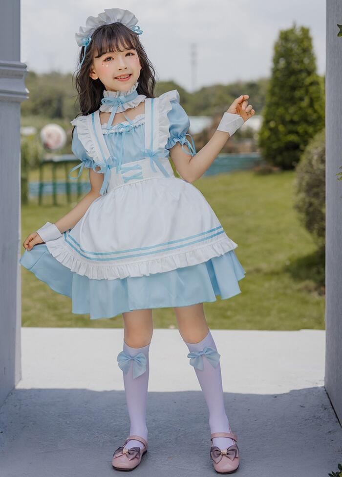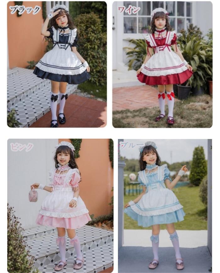 コスプレ 子供 コスチューム メイド服 ホビー 期間限定割引クーポン ブラック ワイン ピンク ブルー 110cm 120cm 130cm 140cm 150cm