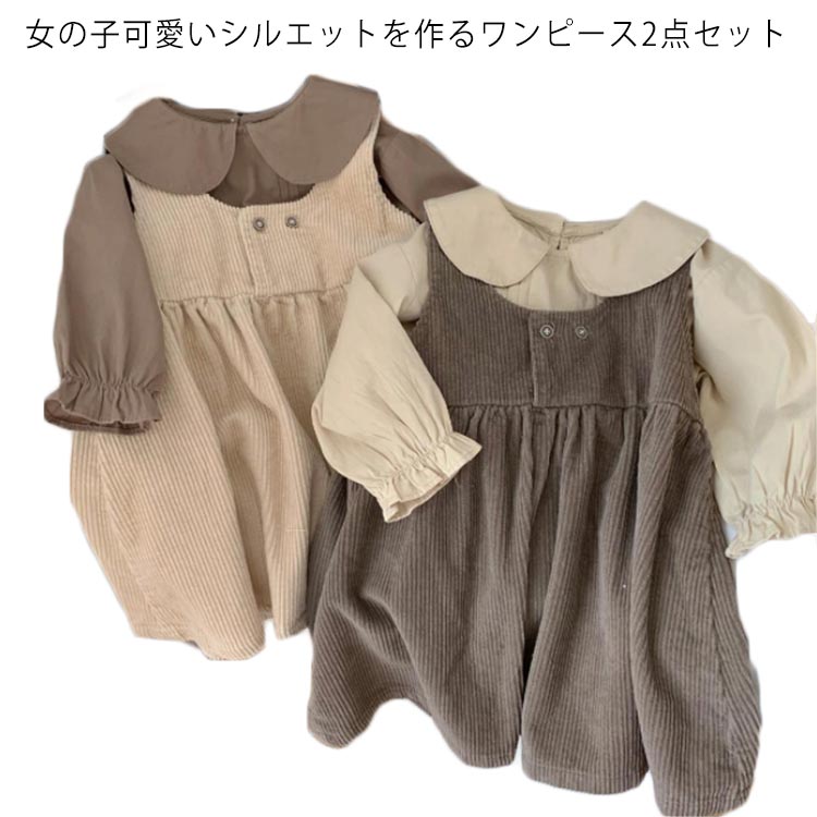 ワンピース 秋 長袖 セットアップ 子 キッズ ベビー マタニティ 豊富 ベージュセット コーヒーセット 80 90 100 110 120