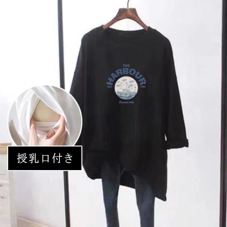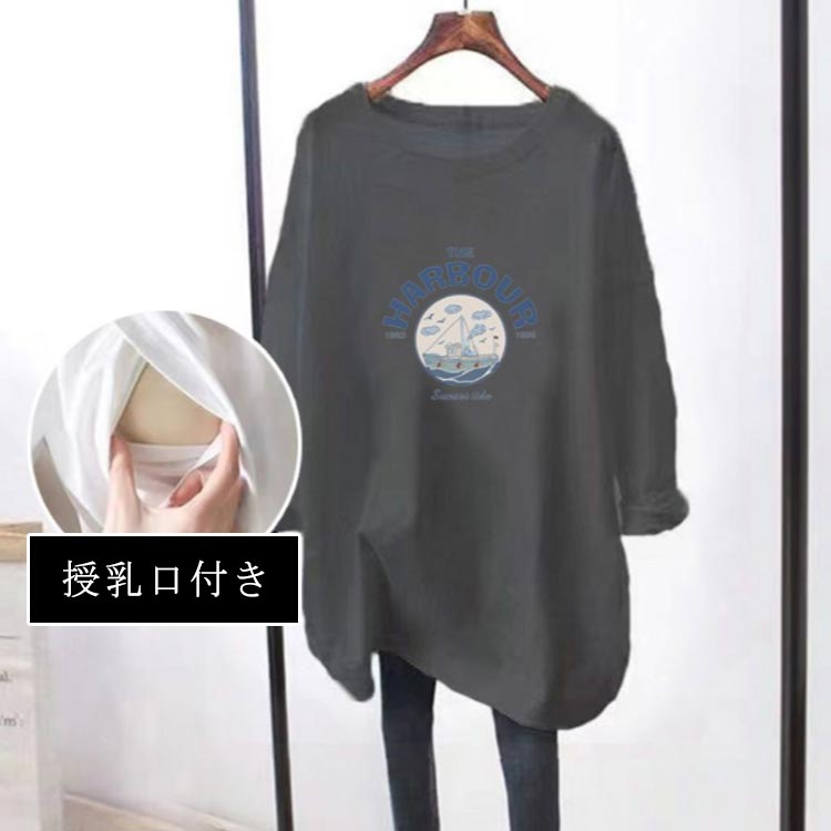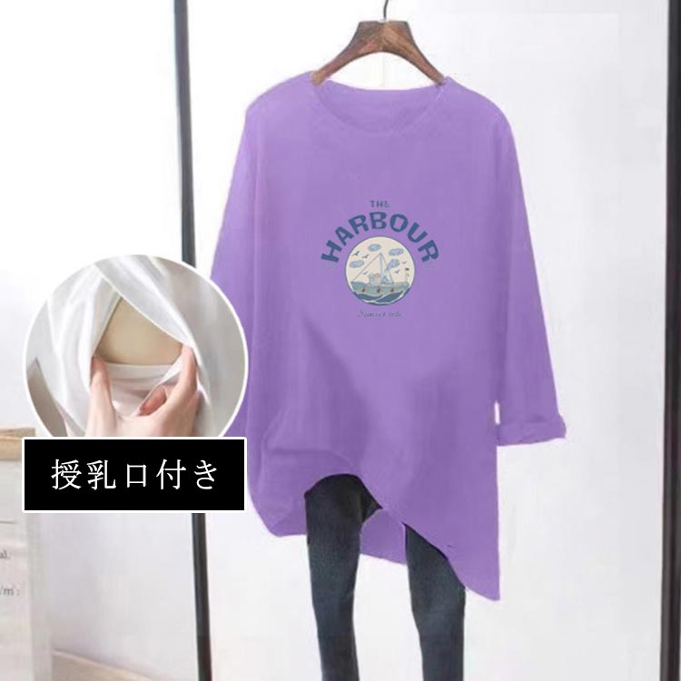 授乳口付き 長袖Tシャツ マタニティ キッズ ベビー マタニティ 豊富 ホワイト ピンク パープル ブラック グレー M L XL 2XL 3XL