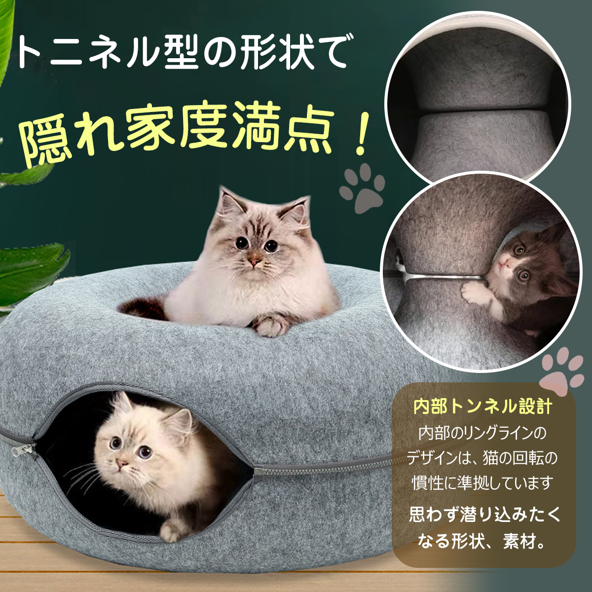 猫ハウス ドーム型 キャットトンネル フエルト製 キャットハウス ドーナツ ペットベッド ドームベッド キャットベッド 取り外し可能 お手入れ簡単 ペット 猫用品 猫トンネル 猫犬小動物用 小型犬 猫遊宅 ストレス発散 ペットのおもちゃ