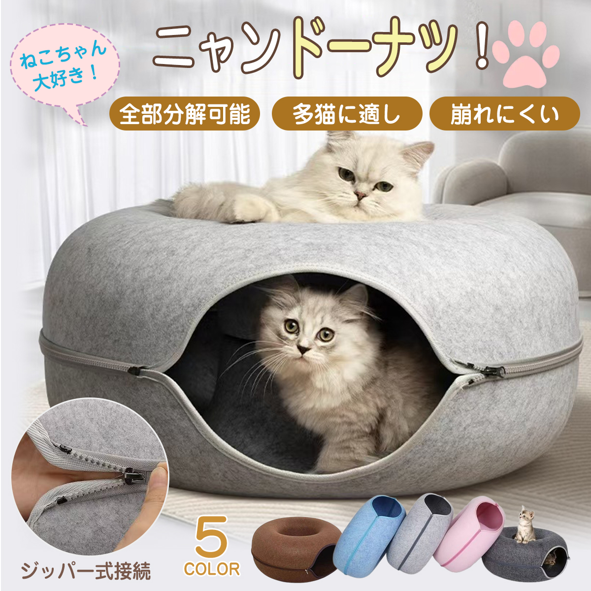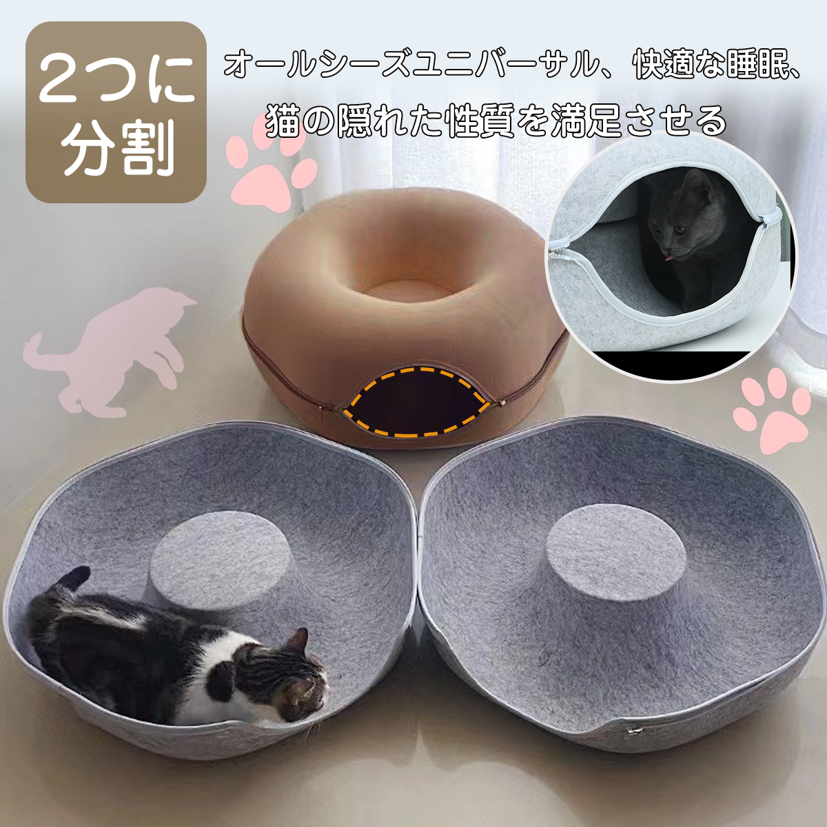ドーナツ猫のトンネル:猫のトンネルはフェルト素材でできており、耐摩耗性、耐傷性、お手入れが簡単です。猫用ベッドと猫用トンネルは、寝たり遊んだりするペットの二重のニーズを満たすためのツーインワン設計です。猫のトンネルのユニークなデザインは、ペットのさまざまな睡眠のニーズを満たすことができ、ペットをより快適にします。