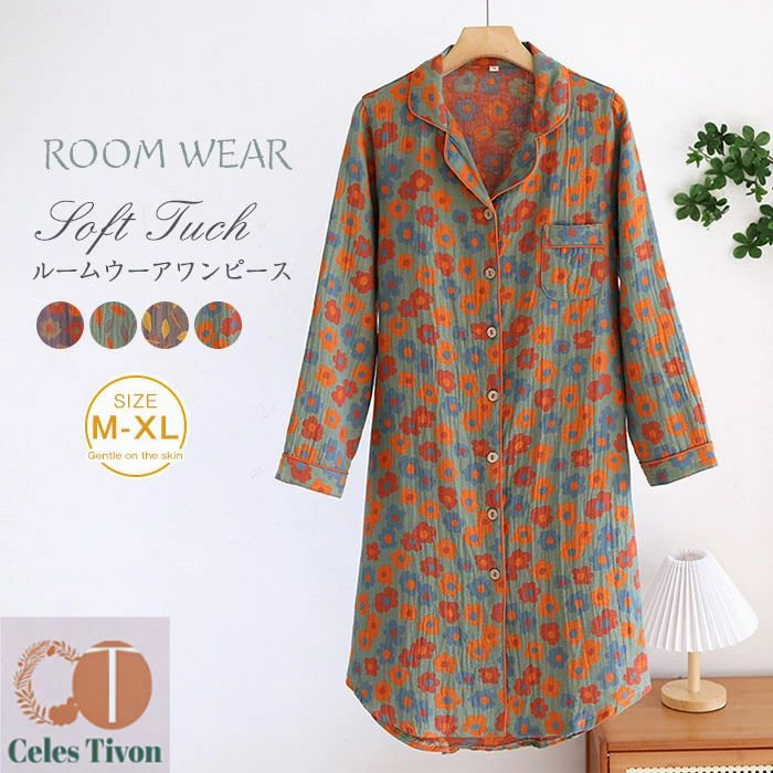 ルームウェア ワンピース 長袖 綿10 A B C D M L XL