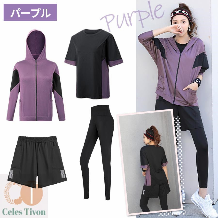 スポーツウェア レディース 4点セット トライアスロン ウェア レディースウェア 特集 パープル ピンク ブラック M L XL 2XL