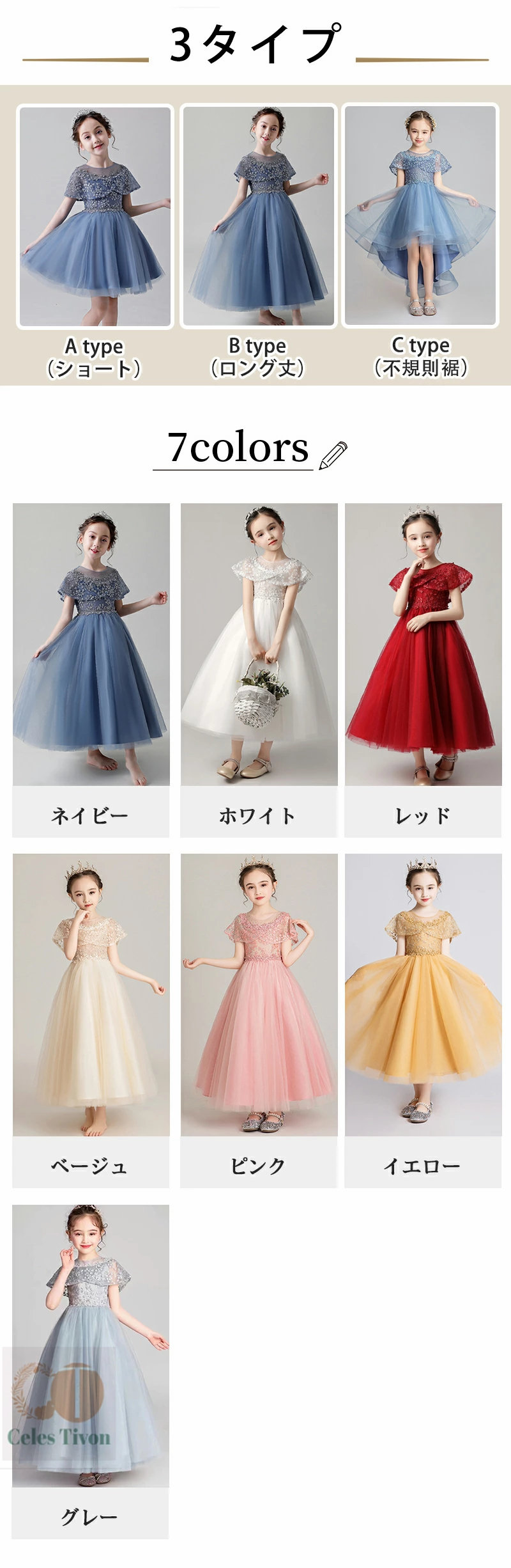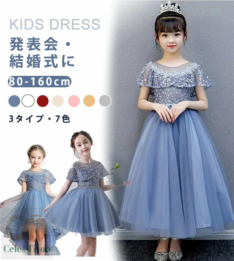 子供ドレス 結婚式 発表会 ロング レ キッズ ベビー マタニティ 豊富 ネイビー ホワイト レッド ベージュ ピンク イエロー グレー A type(ショート) B type(ロング丈) C type(不規則裾)