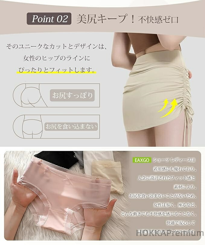 【 美尻キープ&不快感ゼロ!】 女性用に特別にデザインされたこのパンティ レディースは、お尻を美しく見せるのに効果的です。そのユニークなカットとデザインは、女性のヒップのラインにぴったりとフィットします。さらに、このショーツ レディースは着用感にも優れており、入念に設計されたフィット感と素材により、お尻を食い込まないことがないため、女性は歩く、座るなど、どんな動きでも不快感を感じることなく、快適で安心して日常生活を送ることができます。