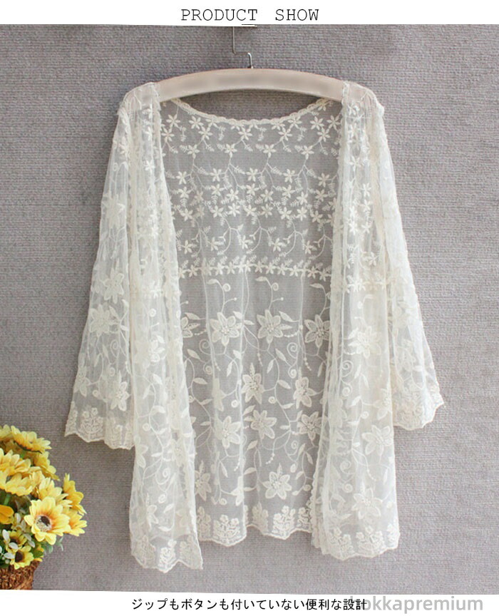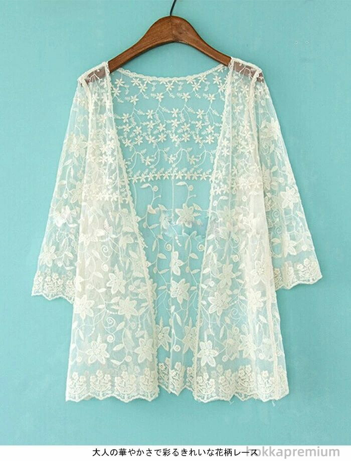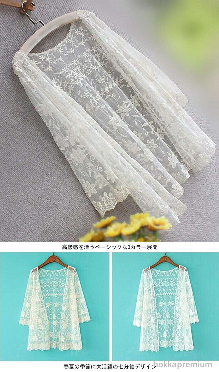 レディース 総レースカーディガン 花柄レース フラワーレース サマーカーディガン 七分袖 透け感 薄手 羽織 ボタンなし トップス 紫外線対策 冷房対策 上品 きれいめ フェミニン 体型カバ おしゃれ