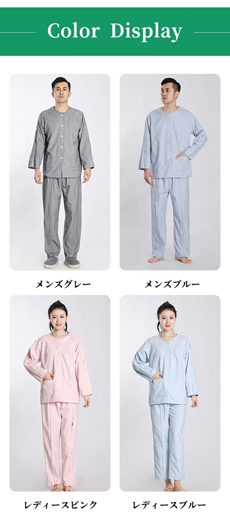 10%off中 フルオープン 全開 入 トップスのみ ズボンのみ 上下セット メンズグレー メンズブルー レディースピンク レディースブルー