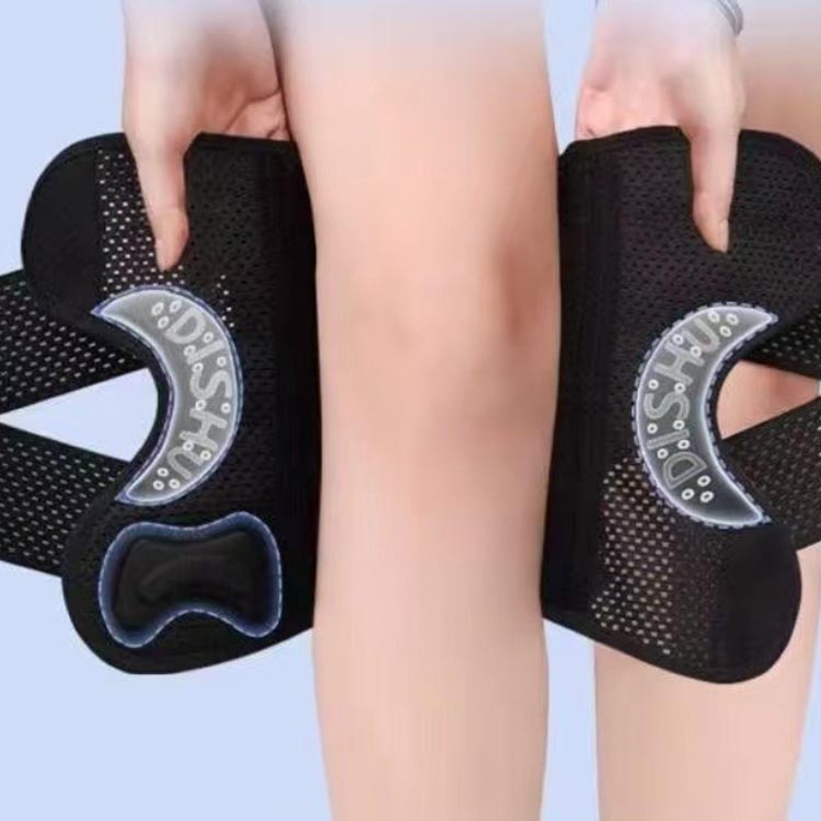 膝サポーターの両側に2本ずつのスプリングを内蔵し、関節の自然な動きとともに流れるように設計されており、運動や激しい活動時に着用するのに理想的なブレースです。