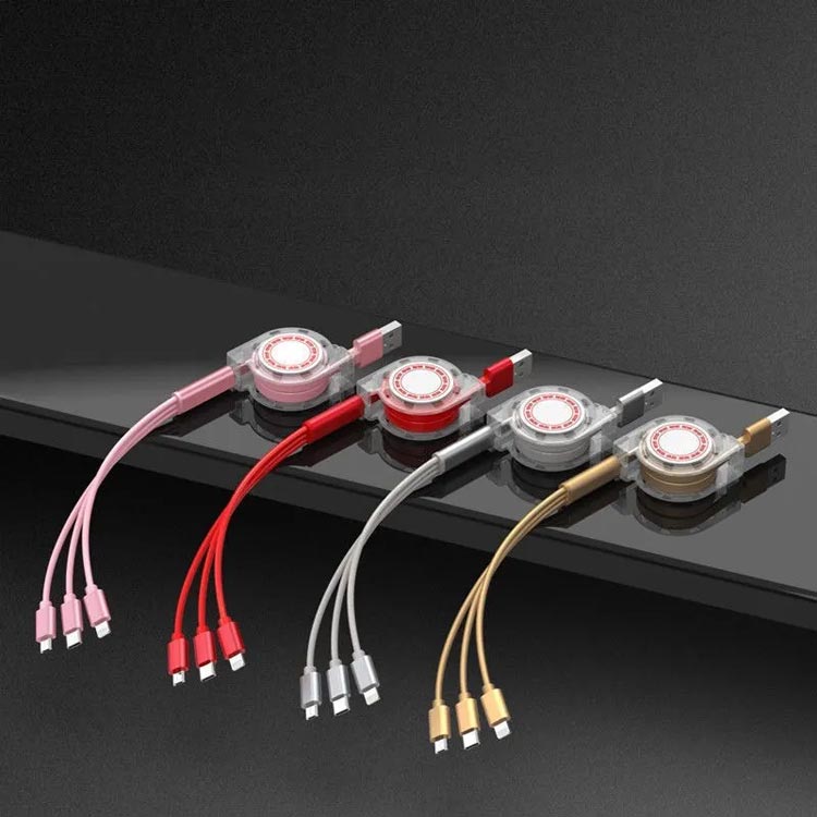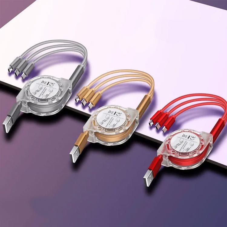 3in1充電ケーブル 巻き取り ライト スマートフォン タブレット用ケーブル 変換アダプター 続々入荷中 グレー(5A急速充電) ブラック(5A急速充電) レッド(5A急速充電) ネイビー(5A急速充電) ゴールド(5A急速充電) ローズゴールド(5A急速充電)