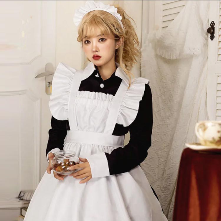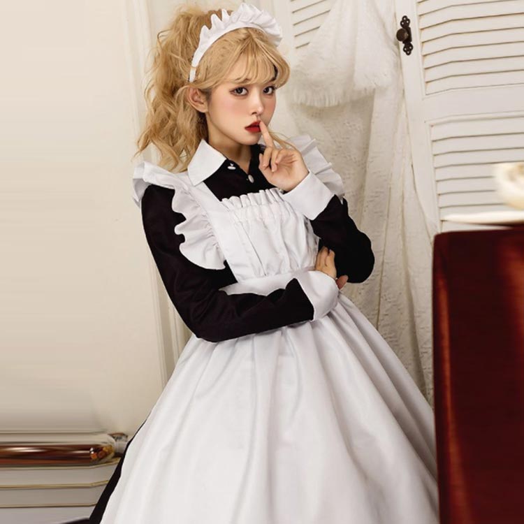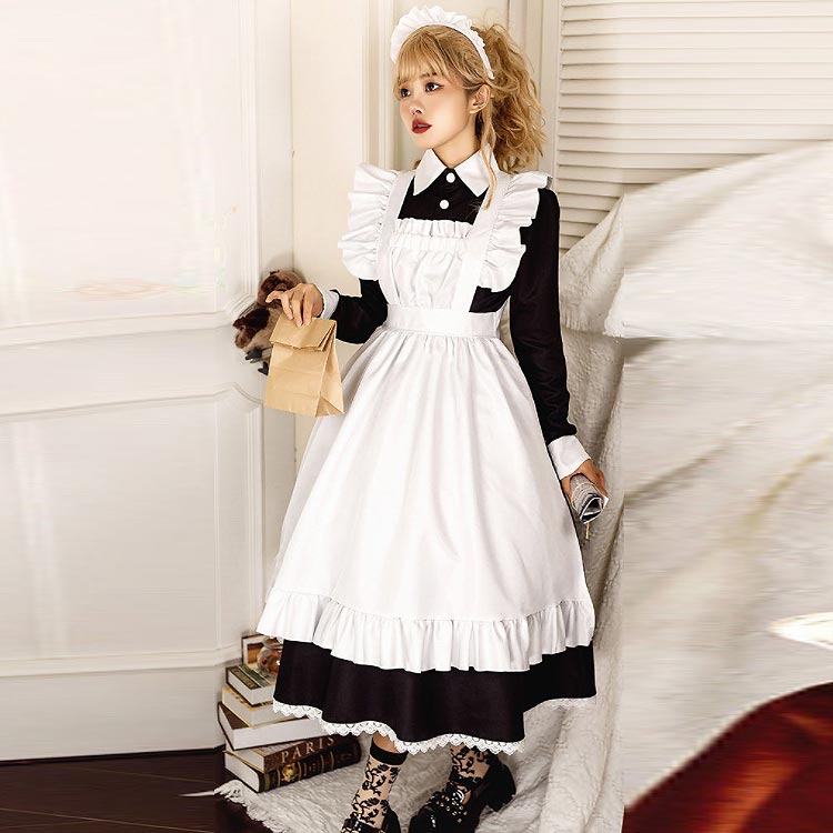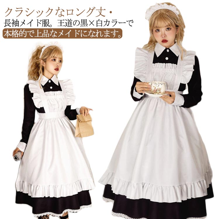 メイド服 エプロン 長袖 クラシック コスプレ 変装 仮装 ワンピース 人気 S M L XL 2XL 3XL