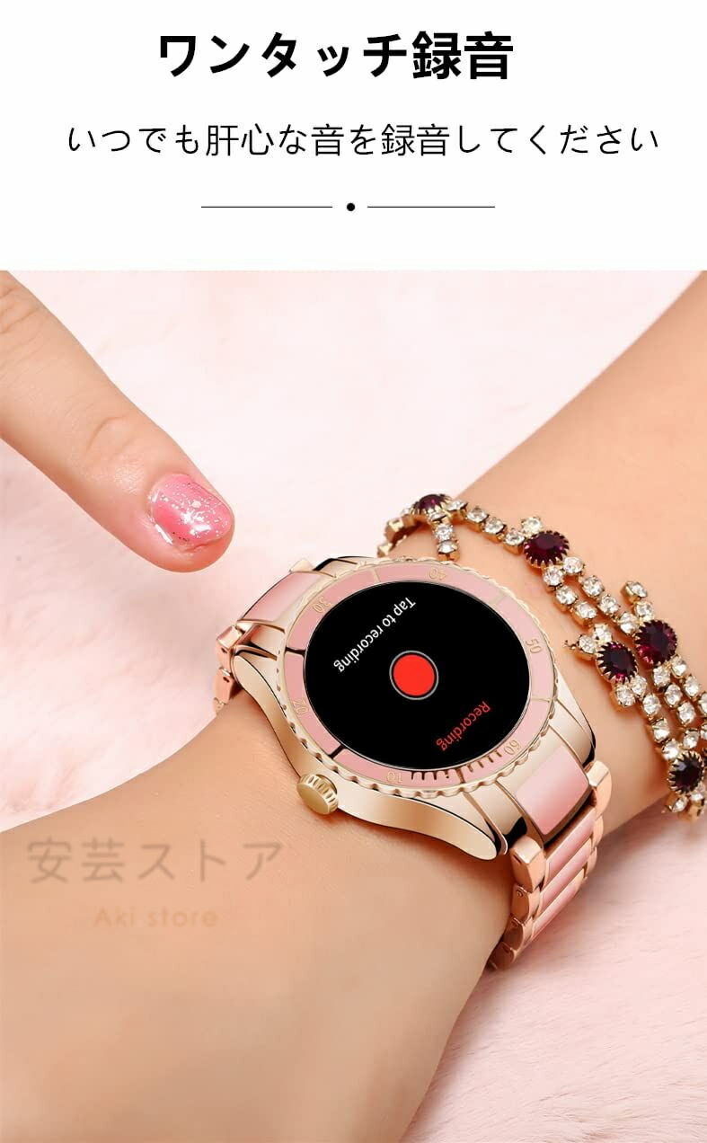 スマートウォッチ 日本製センサー 録音 ピンク 白 黒