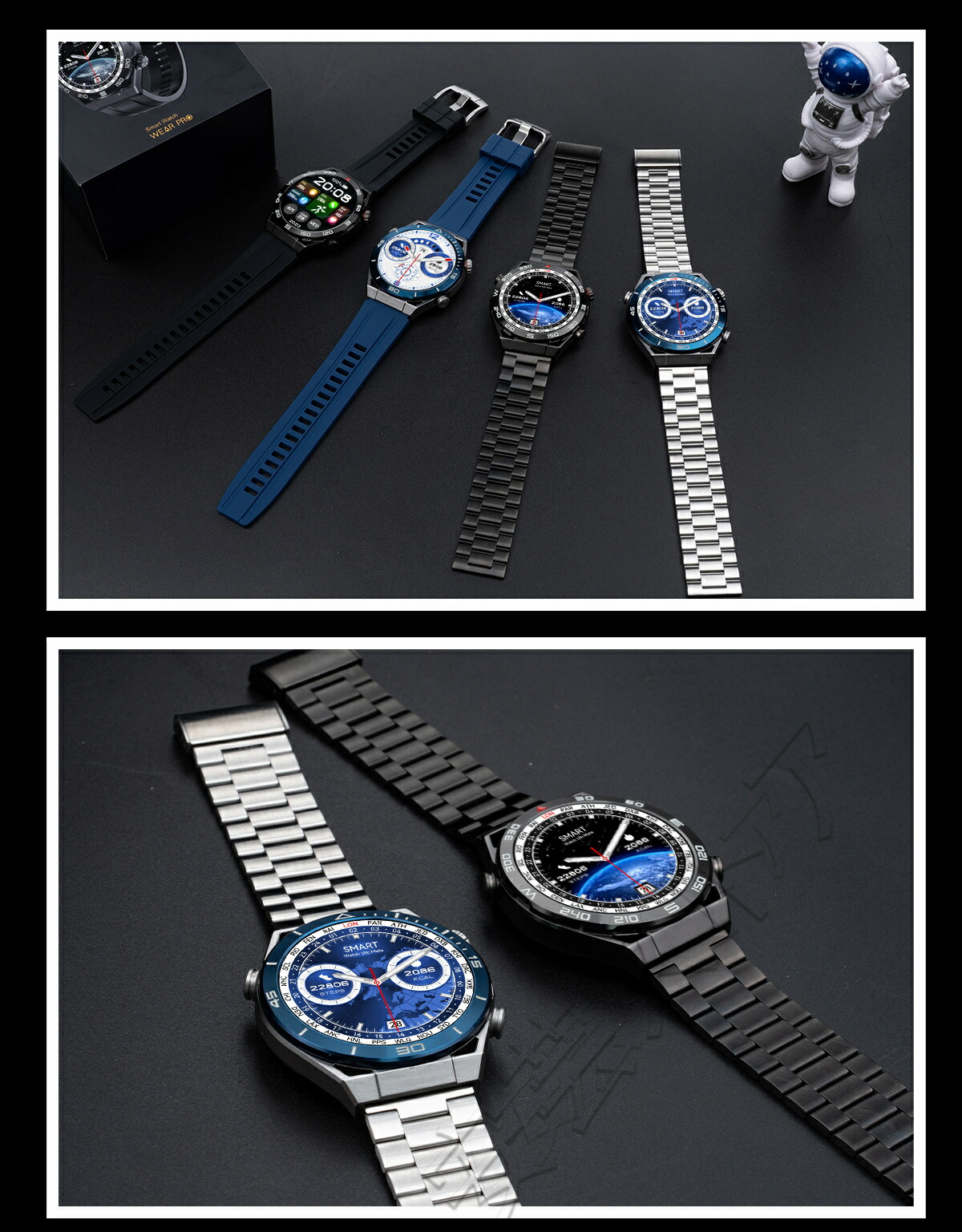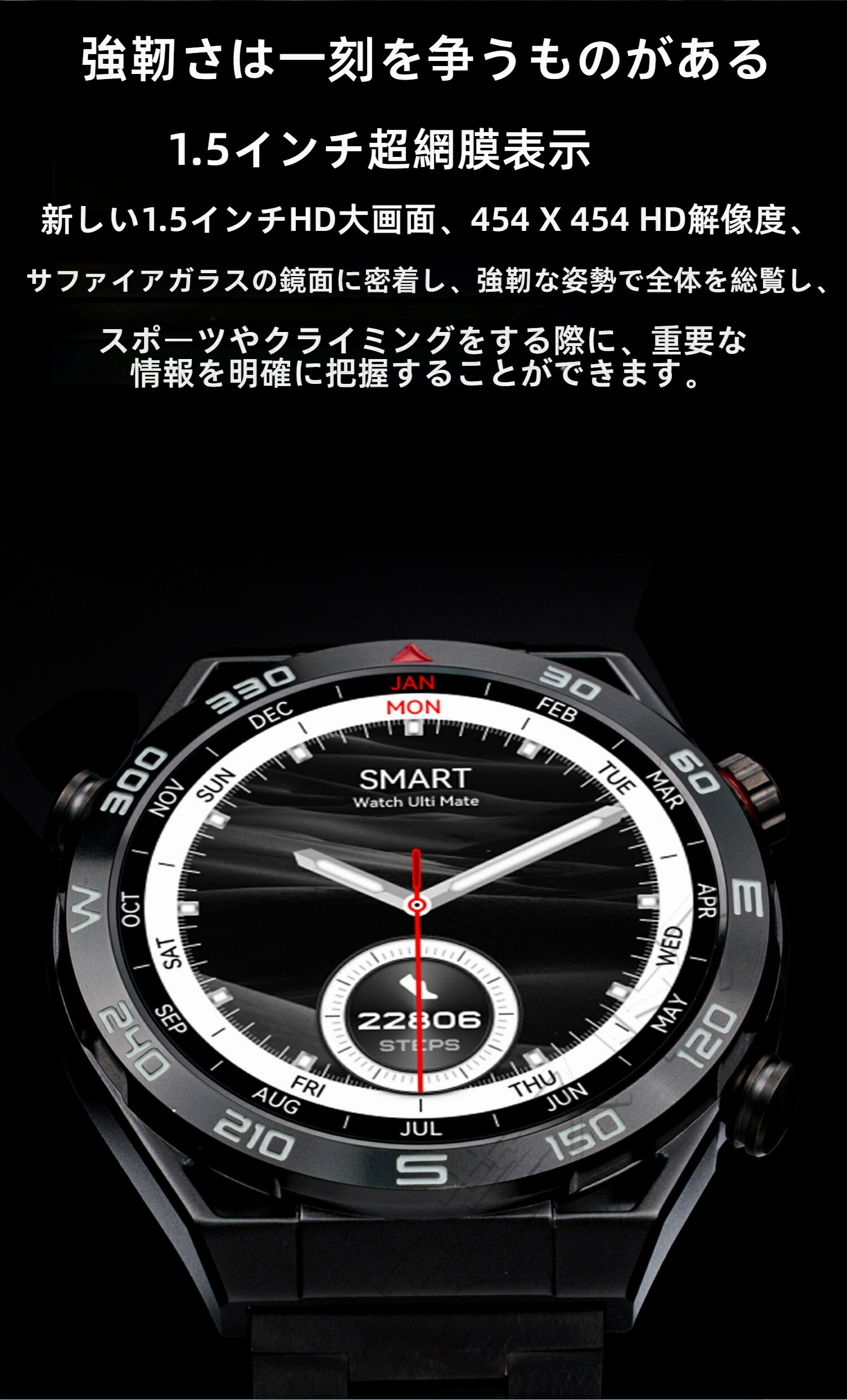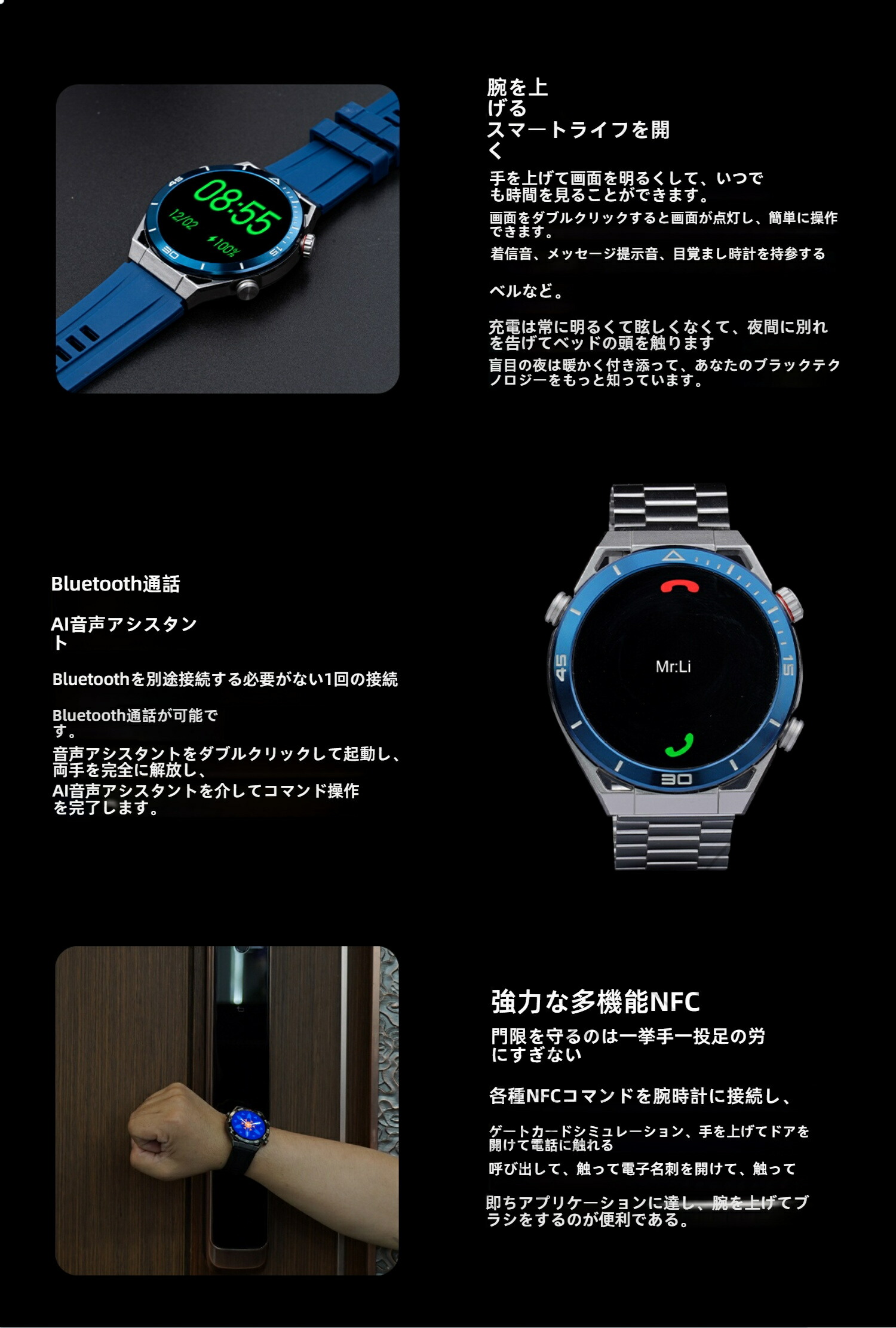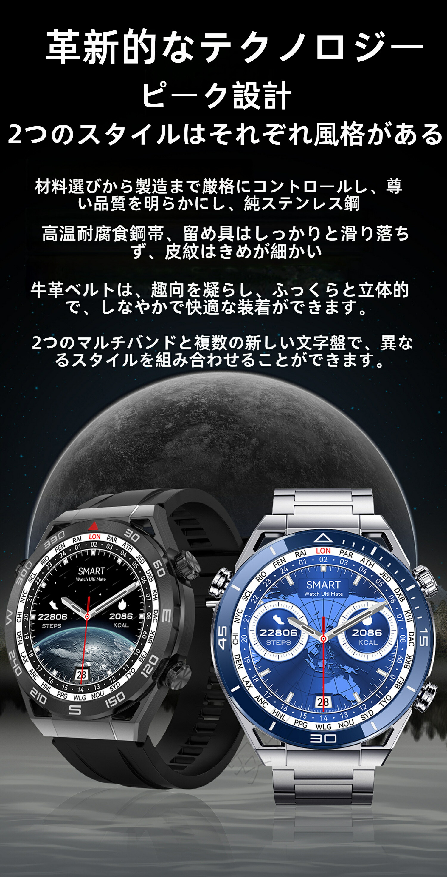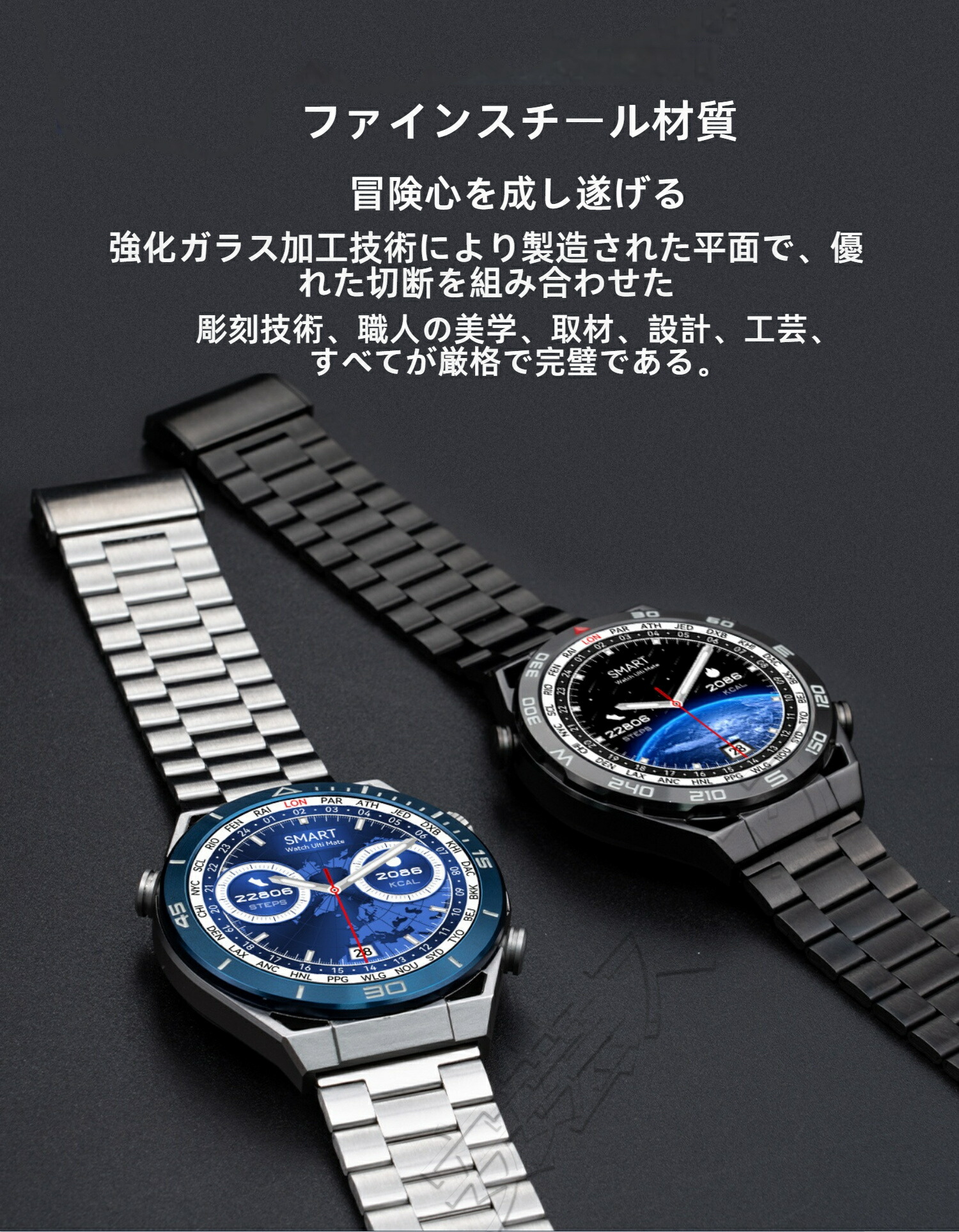 ビジネススマートウォッチ 日本製センサ ブラックスチール ブルースチール
