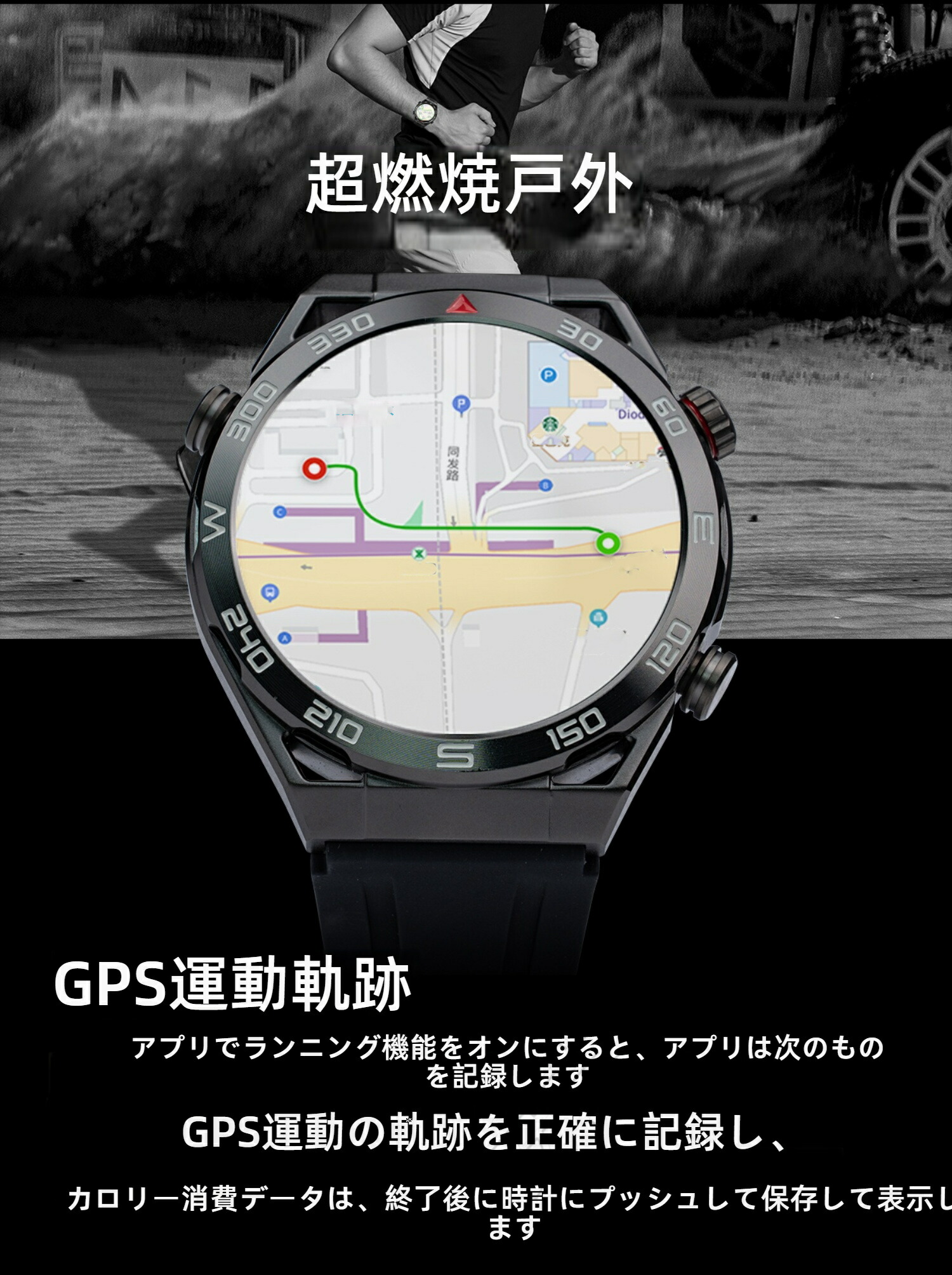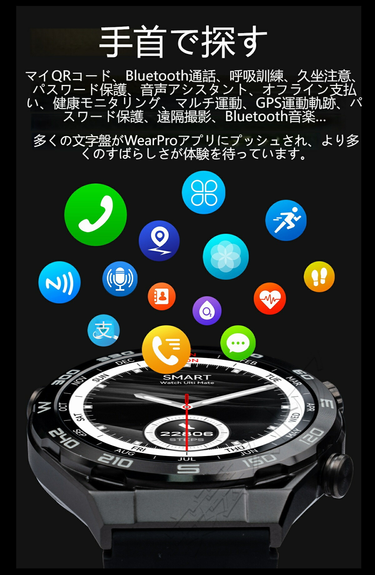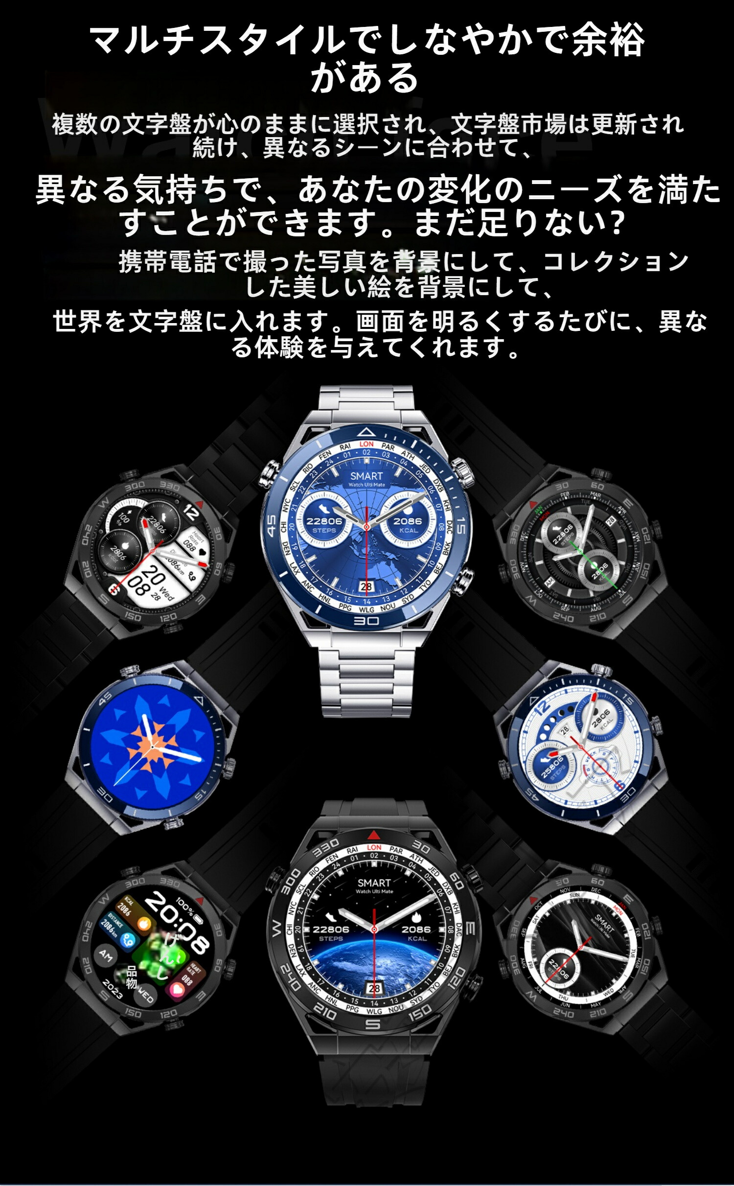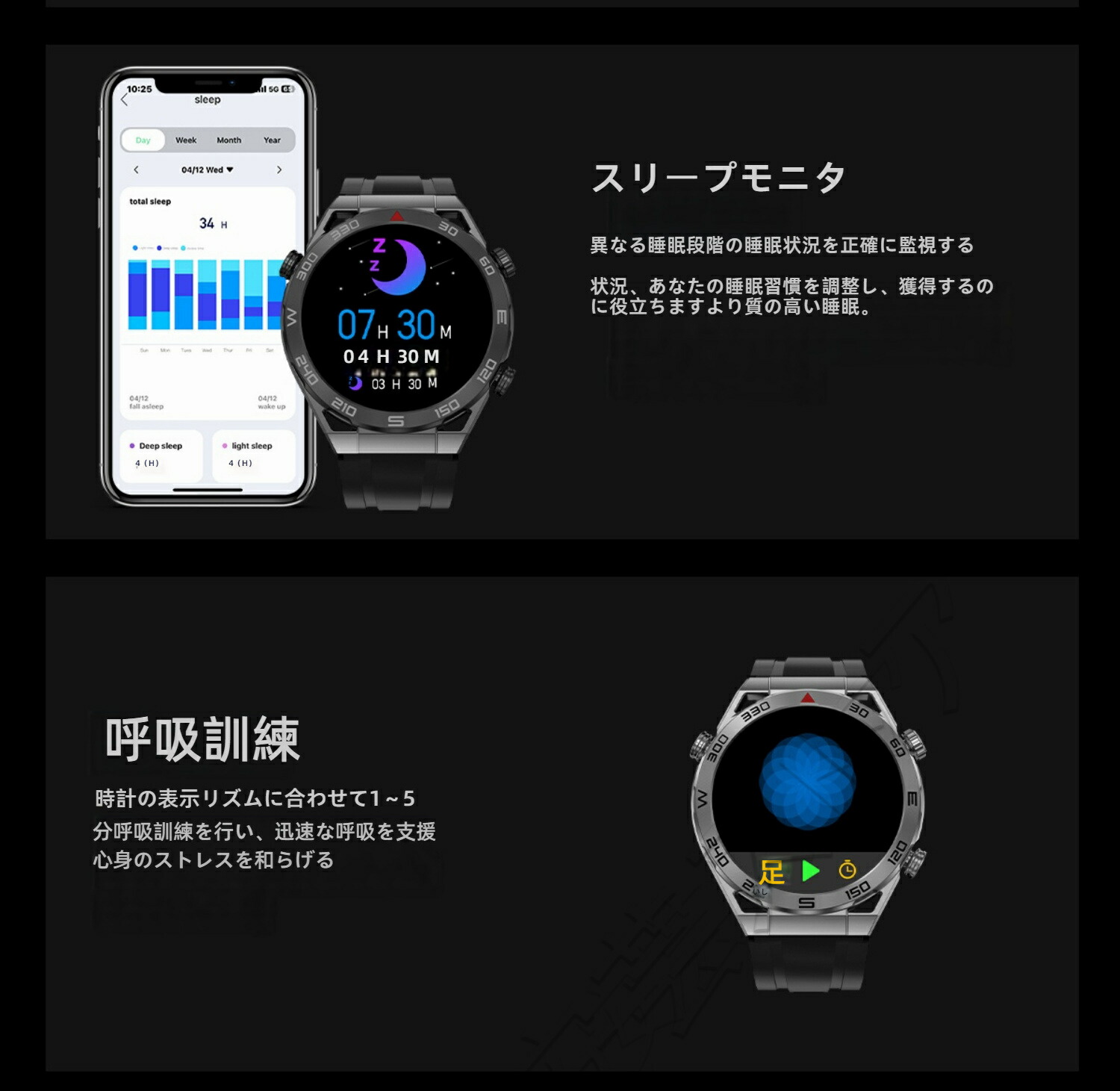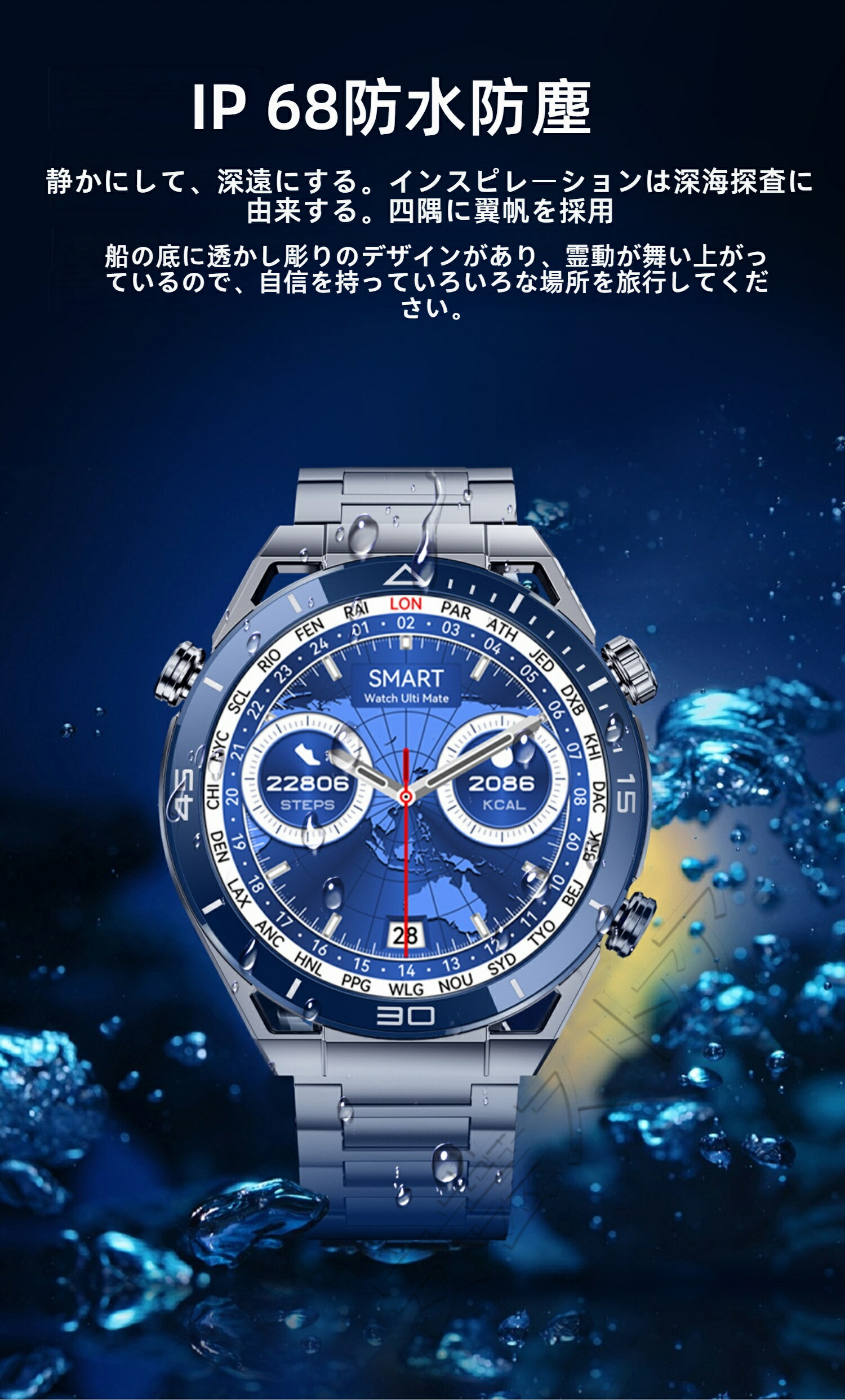 ビジネススマートウォッチ 日本製センサ ブラックスチール ブルースチール