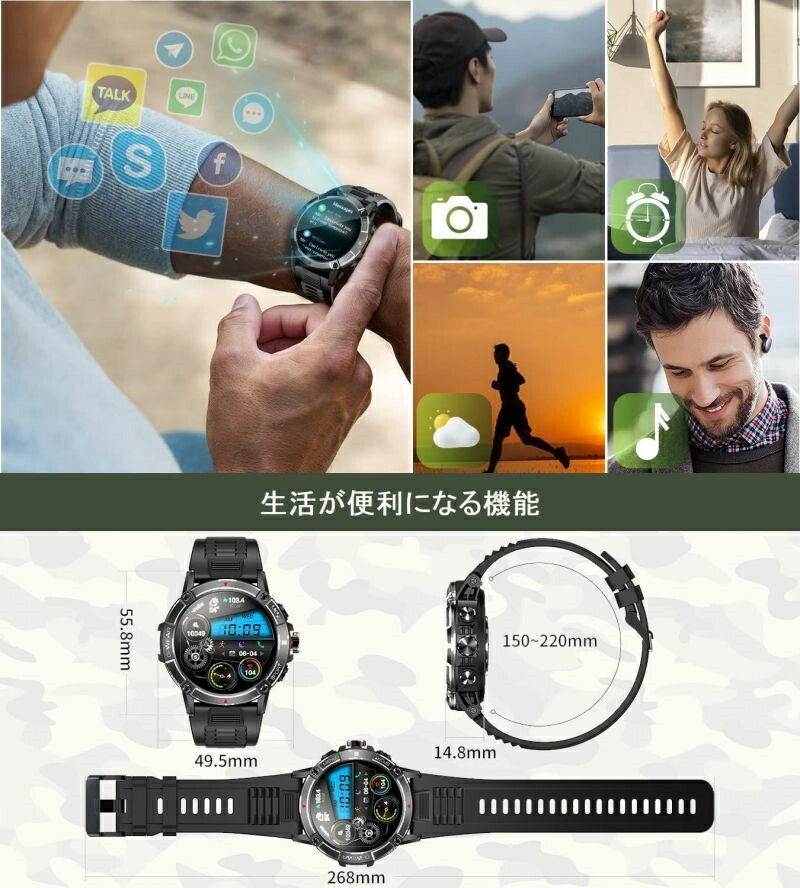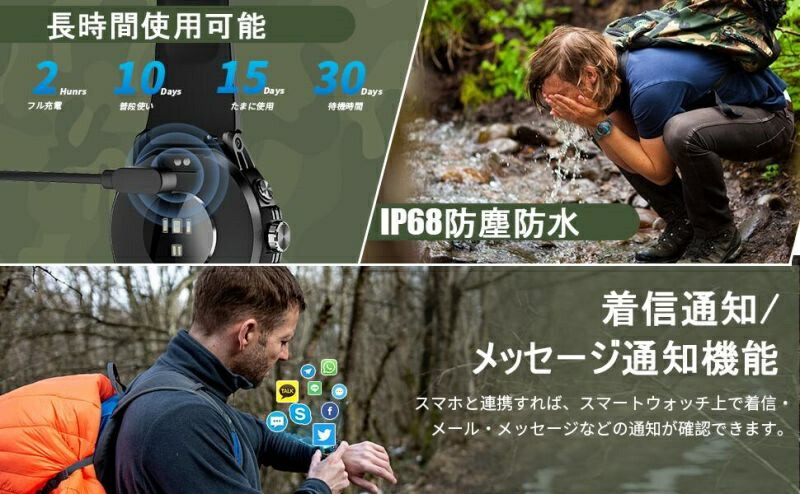 【IP68防塵防水&コンパス機能付きスマートウォッチ】