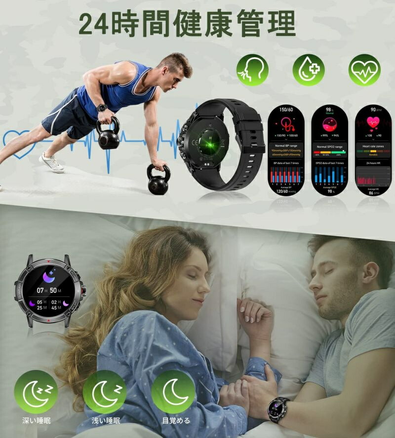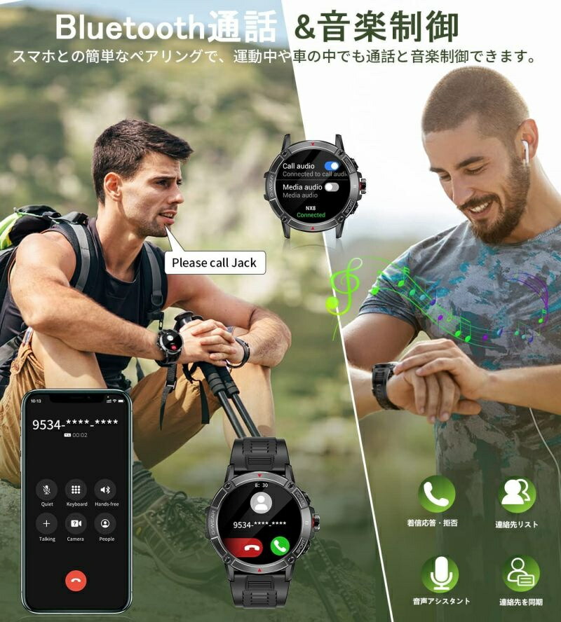 スマートウォッチ 日本製センサー IP68防水 Bluetooth5.2通話 約100種類運動モード Line メッセージ通知 iphone 長持ちバッテリー GPS運動記録 歩数 android対応