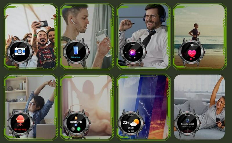 ・このスマートウォッチは400mahの大容量バッテリーを内蔵し、約2時間のフルー充電で7-15日使用可能です。外出や出張の際、バッテリー不足の心配はありません。 また、スマートウォッチで音楽プレーヤーの操作やカメラ制御などもできます。