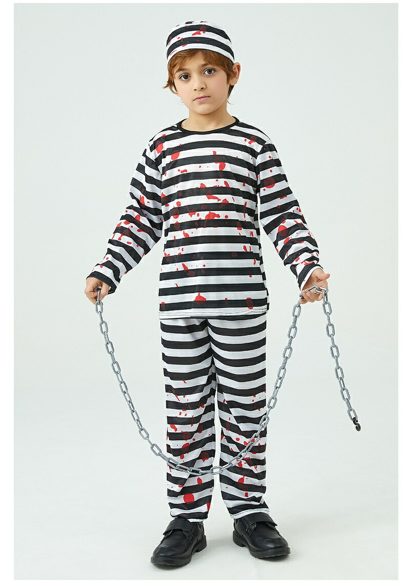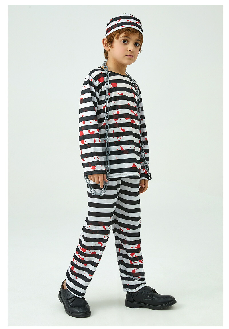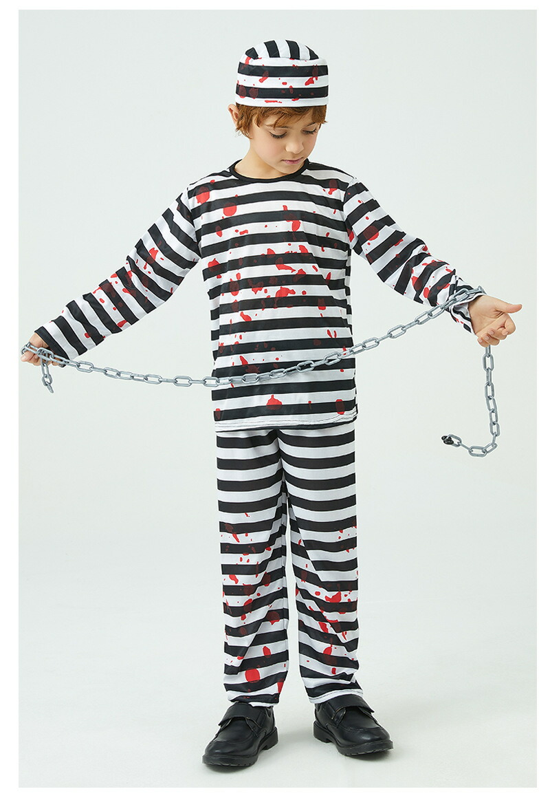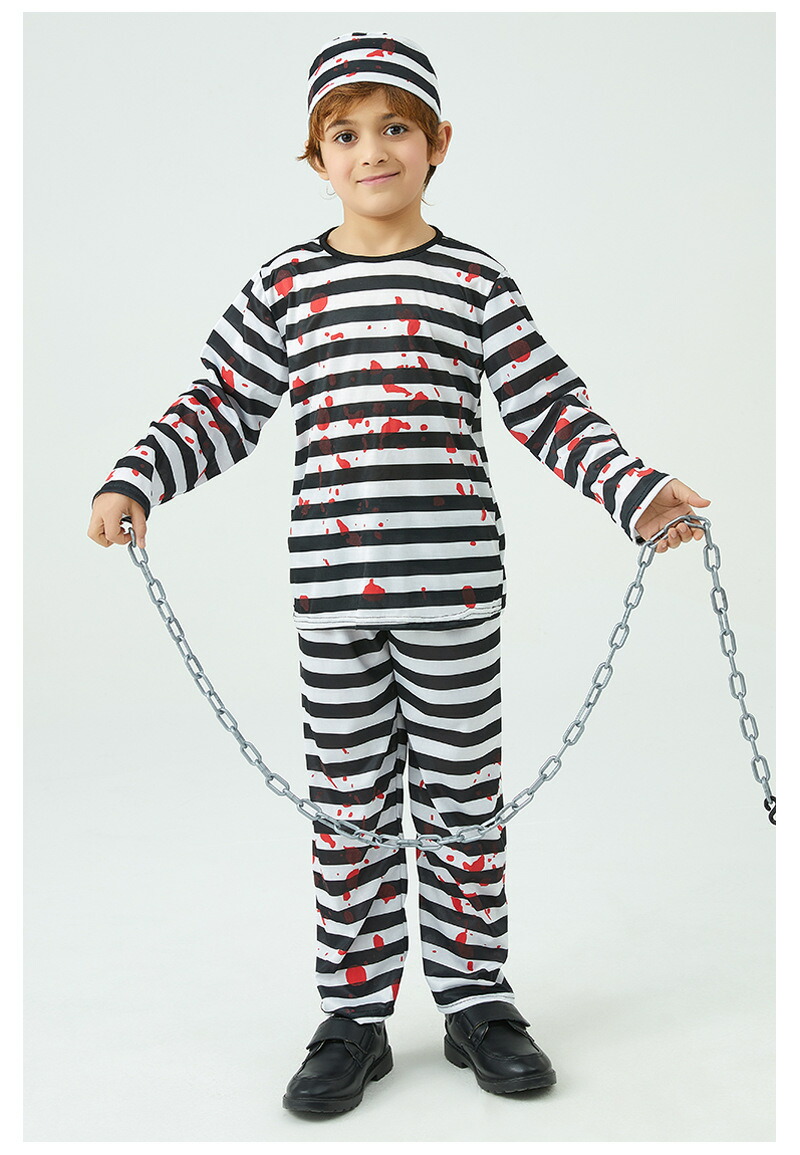 ハロウィン衣装 チェーン付き 囚人服 コスプレ 変装 仮装 コスチューム一式 期間限定割引クーポン S M L