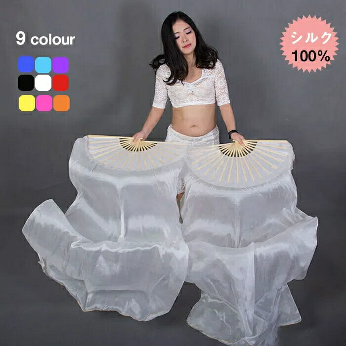 シルクファンベール シルク100% ベ 体操 ダンス ベリーダンス ベール 新作 ホワイト ブラック ブルー 水色 オレンジ パープル レッド ローズ イェロー 総長150cm 総長180cm