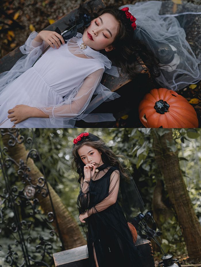 ハロウィン 衣装 ゾンビ 子供 キッズ ホビー 期間限定割引クーポン ブラック ホワイト ブラック+黒ベール/別途+330円税込 ホワイト+白ベール/別途+330円税込 110cm 130cm 150cm