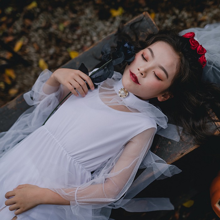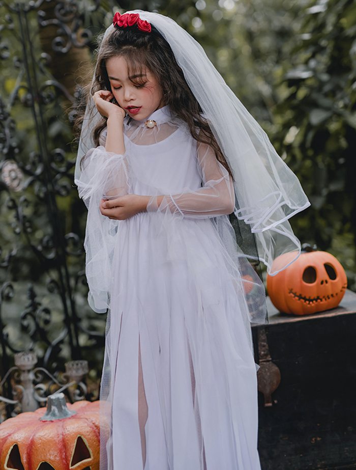 ハロウィン 衣装 ゾンビ 子供 キッズ 女の子 花嫁ゾンビ鬼嫁 ベール付きコスプレ おに エンゼル お姫様 幽霊 コスチューム 仮装 コスプレ衣装 ステージ 舞台 演出 パーティー