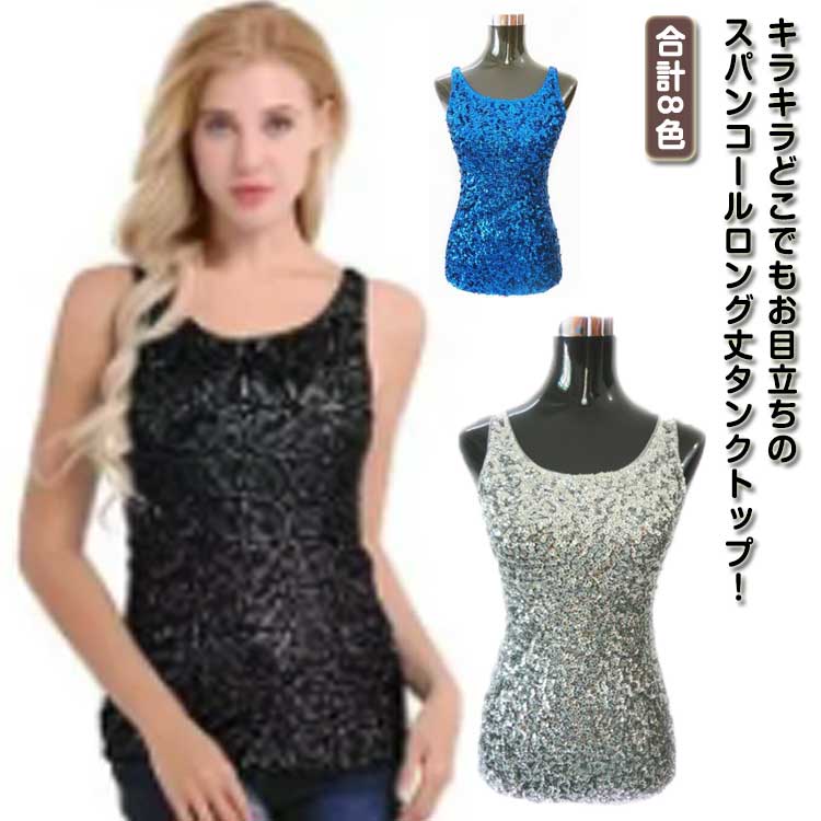 スパンコールトップス タンクトップ ダ レディースファッション 通販 ダークブルー ゴールド レッド バラレッド ブラック シルバー ホワイト パープル
