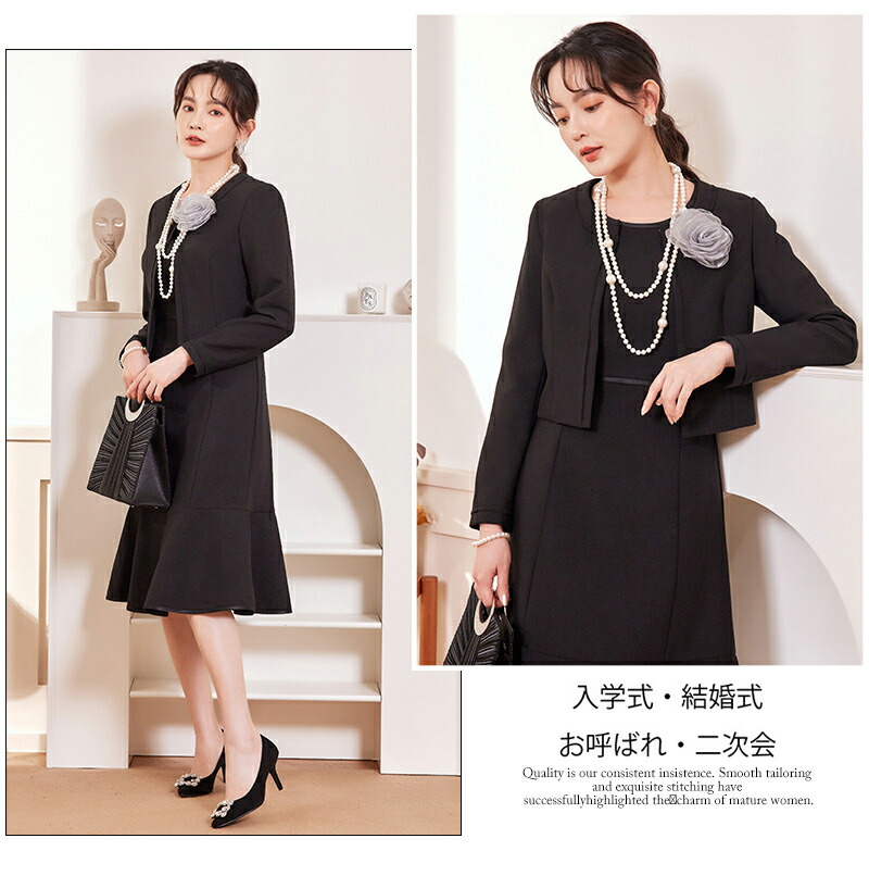 ワンピース セレモニースーツ 2点セッ レディースファッション 続々登場 ネイビー ブラック S M L XL XXL