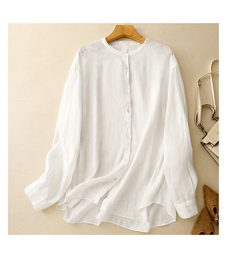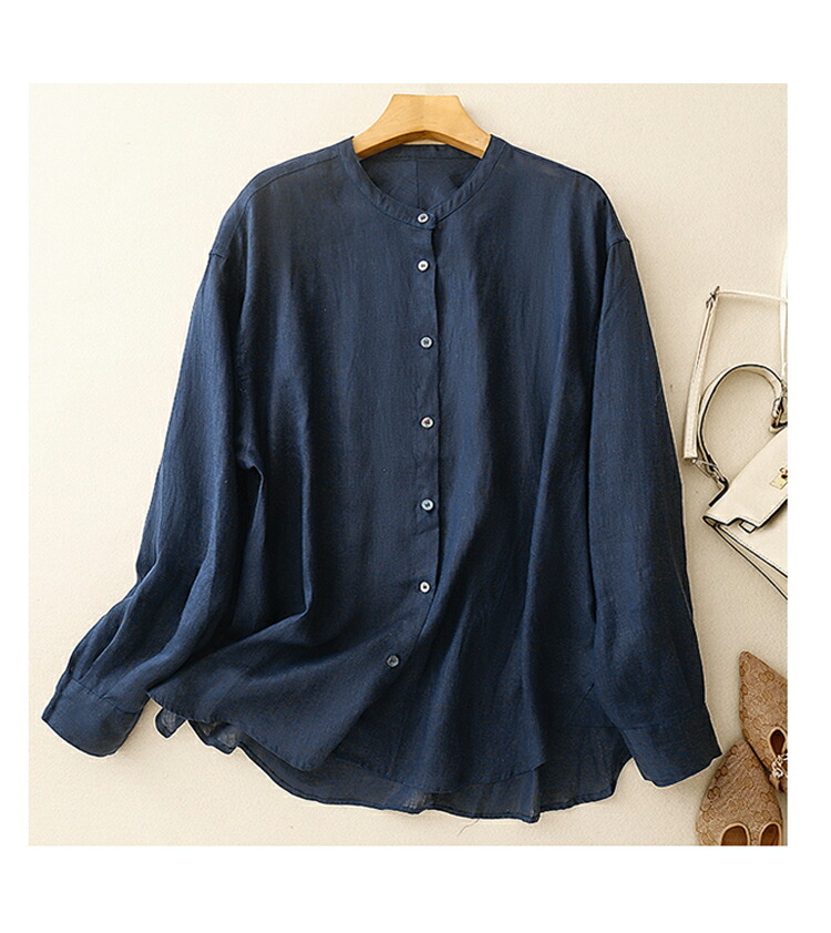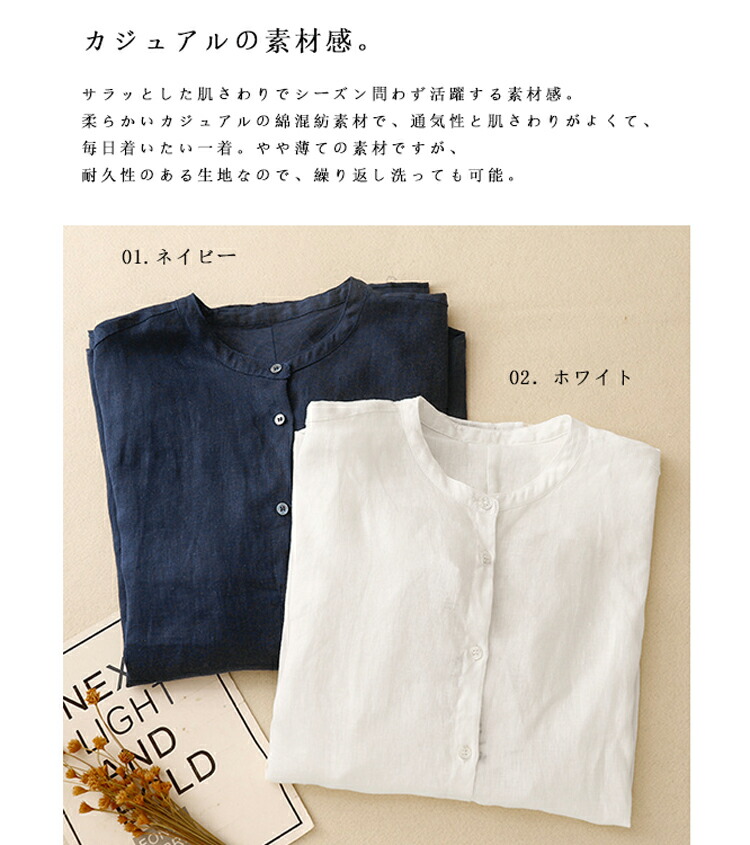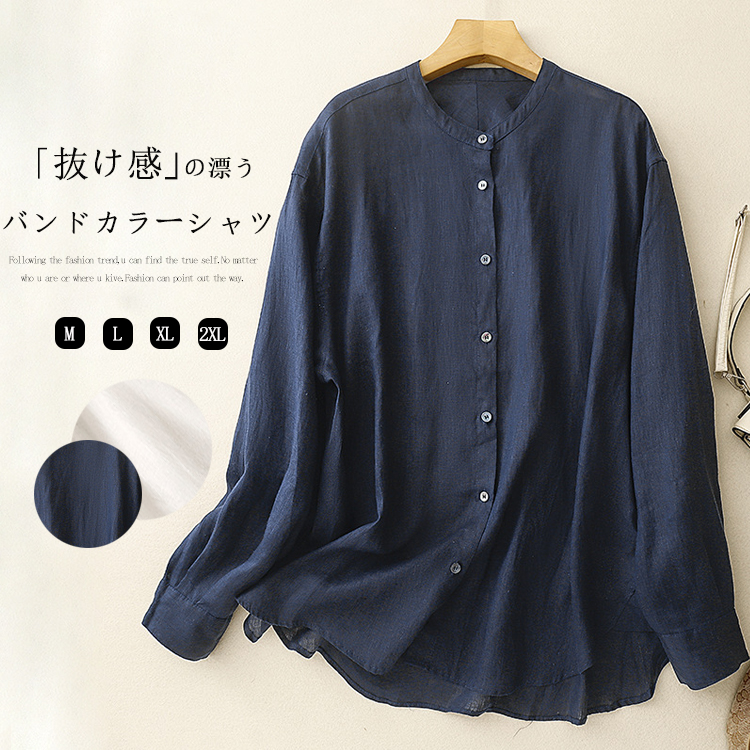 バンドカラーシャツ レディース 長袖 レディースファッション 期間限定ポイントUP! ホワイト ネイビー M L XL 2XL