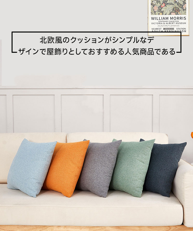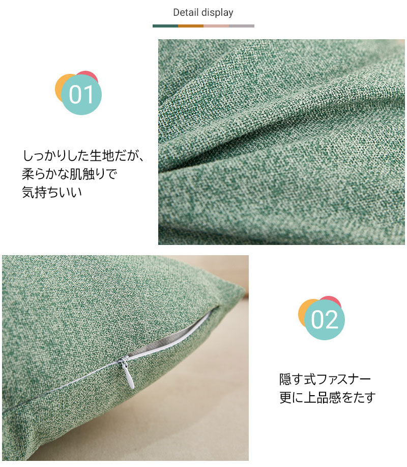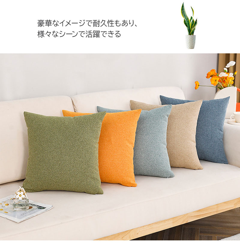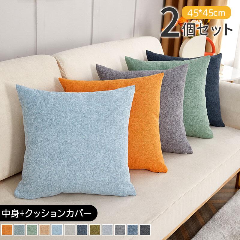 2個セット クッション 麻クッション オレンジ ブルーグリーン ライトブラウン ブルー オフホワイト ネイビー ダークグリーン ライトブルー グレー ダークブルー ブラック グリーン