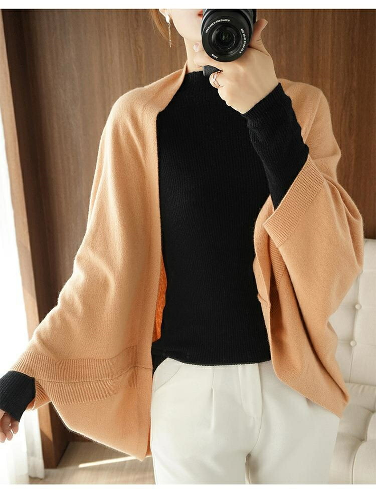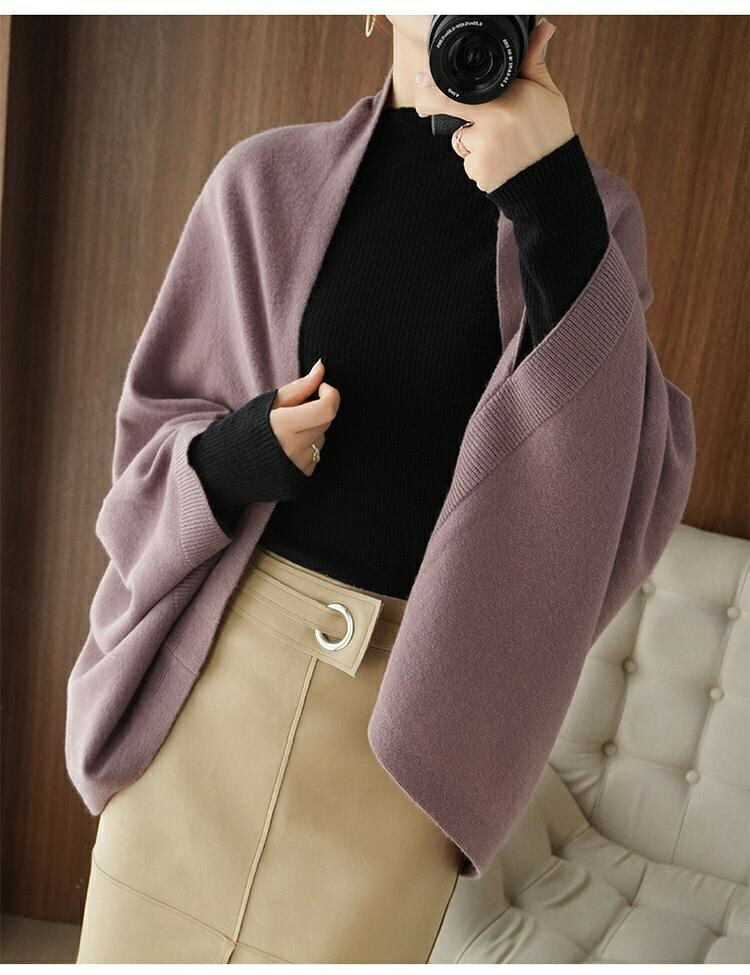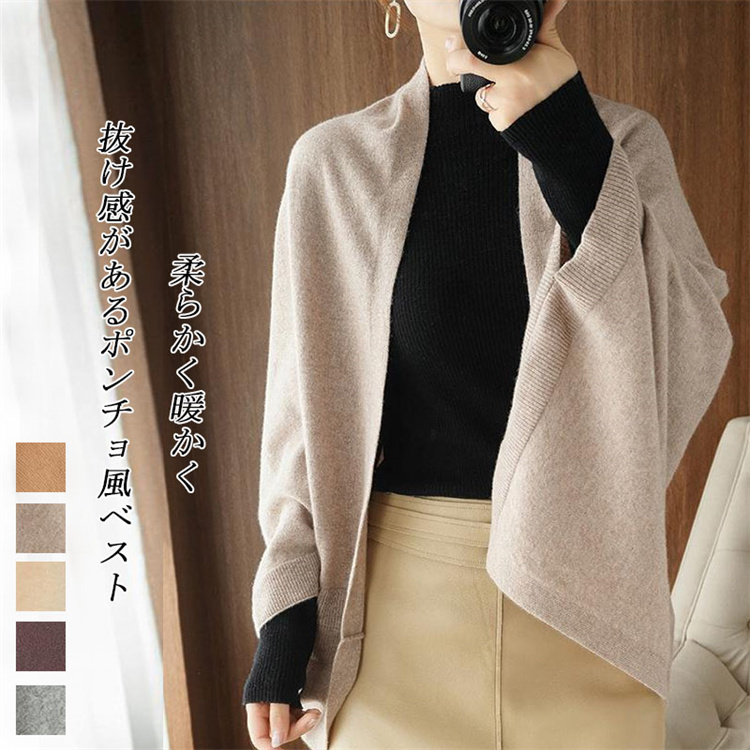 ポンチョ ニット ニットカーディガン レディースファッション 新作 ベージュ アイボリー パープル カラメル グレー