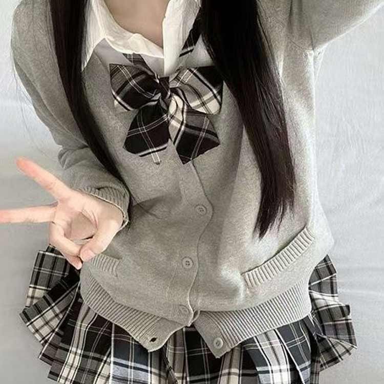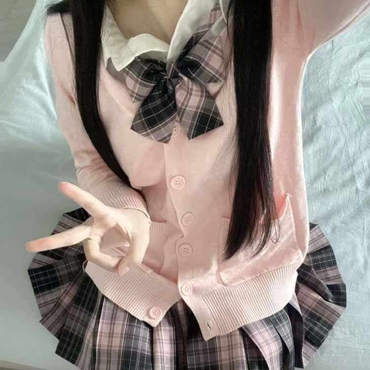 スクールカーディガン プリーツスカート 学生服 セーラー服 期間限定ポイントUP! 4点セットダークグレー1 4点セットライトグレー 4点セットピンク 4点セットダークグレー2 S M L XL 2XL