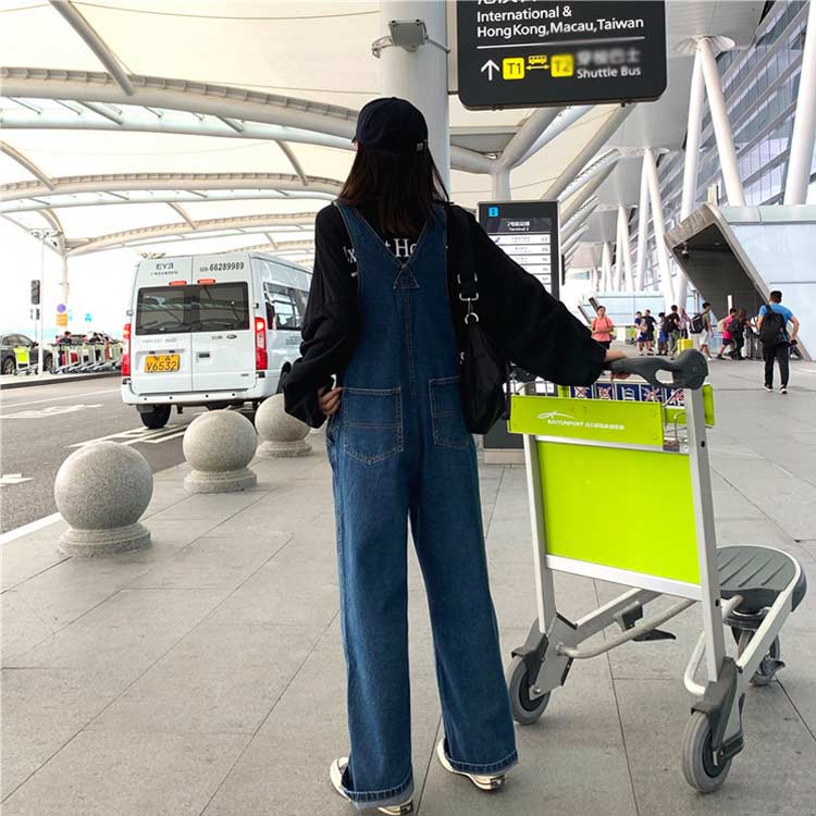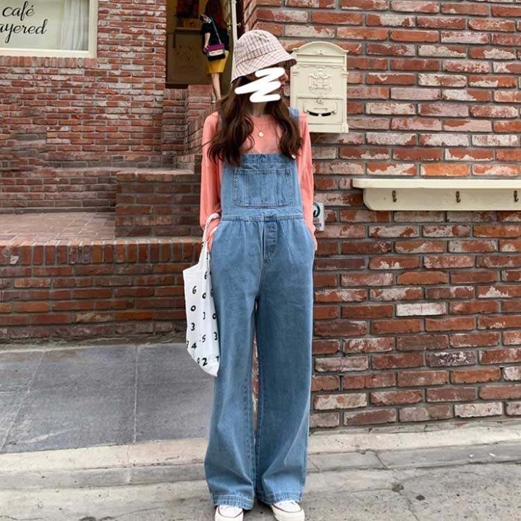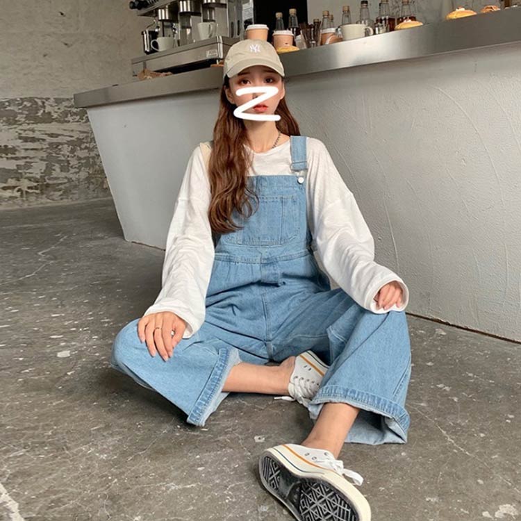 デニムオーバーオール シンプル S サロペット ストリート系 オールインワン オーバーオール ワイドパンツ つなぎ ゆったり 大きいサイズ L 作業着 M ロールアップ ロングパンツ レディース LL